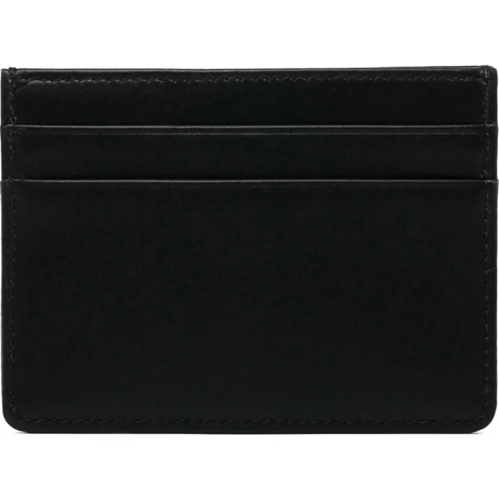 Dolce & Gabbana Black and Grey Calf Leather Logo Jacquard Card Holder. Black and grey calf leather card holder, jacquard logo motif, silver tone logo plaque, card slots and main compartments.
