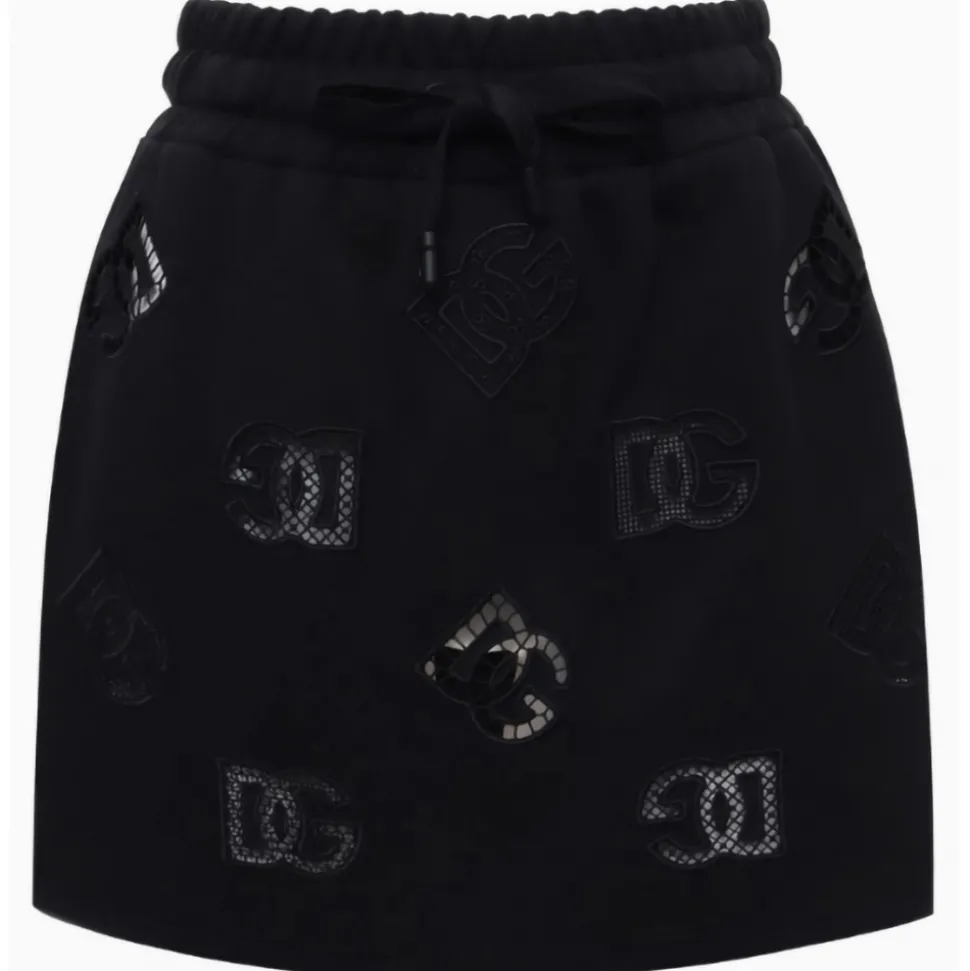 Dolce & Gabbana Skirt Black, monogram logo across the entire skirt, elastic waist with drawstring.