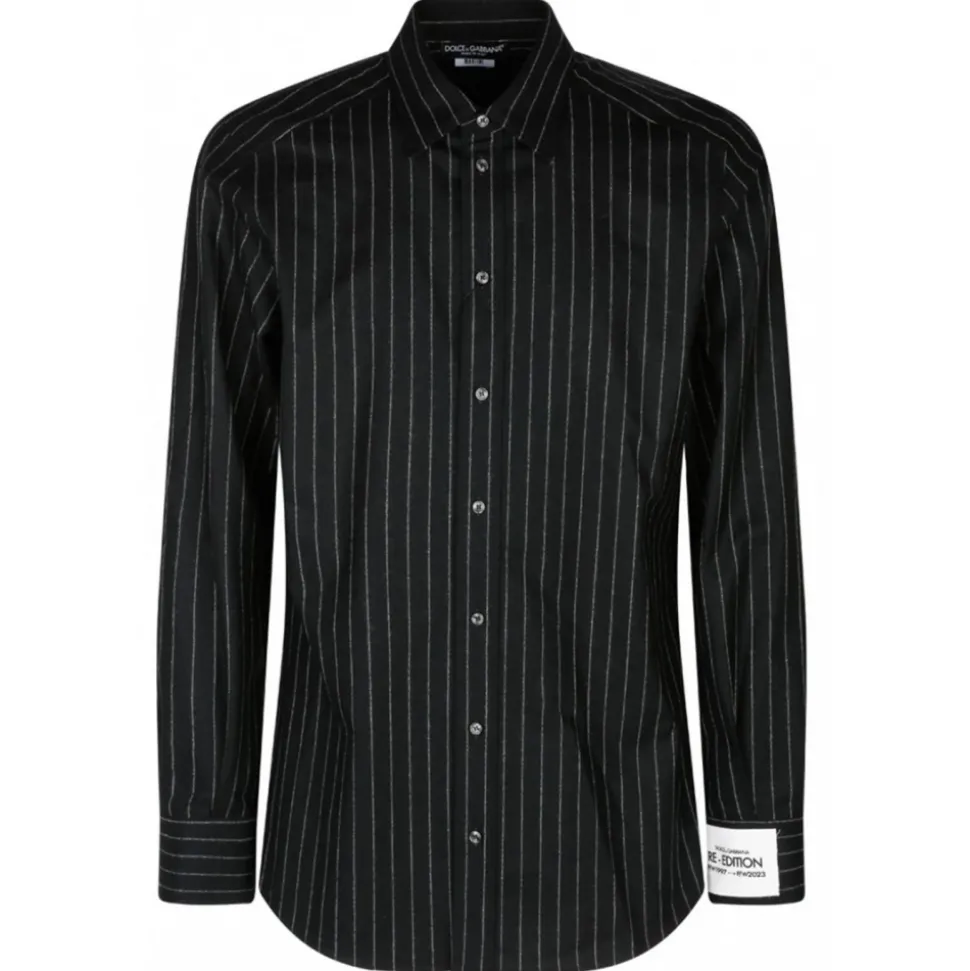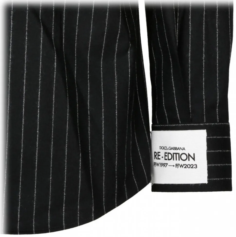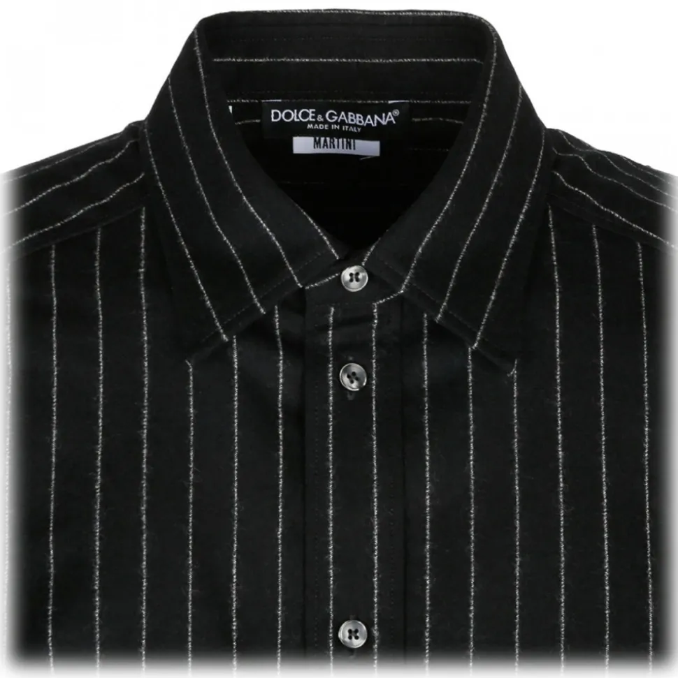 Dolce & Gabbana – Black Virgin Wool Striped Shirt – Dolce & Gabbana Exclusive Luxury Collection