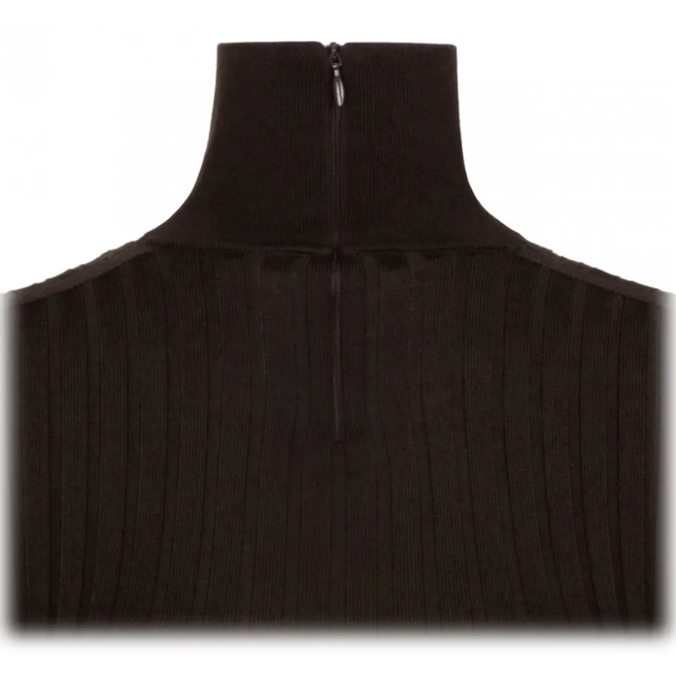 Dolce & Gabbana Brown Cashmere Sweater. Brown ribbed cashmere turtle neck sweater, high neck, long sleeves, slim fit.