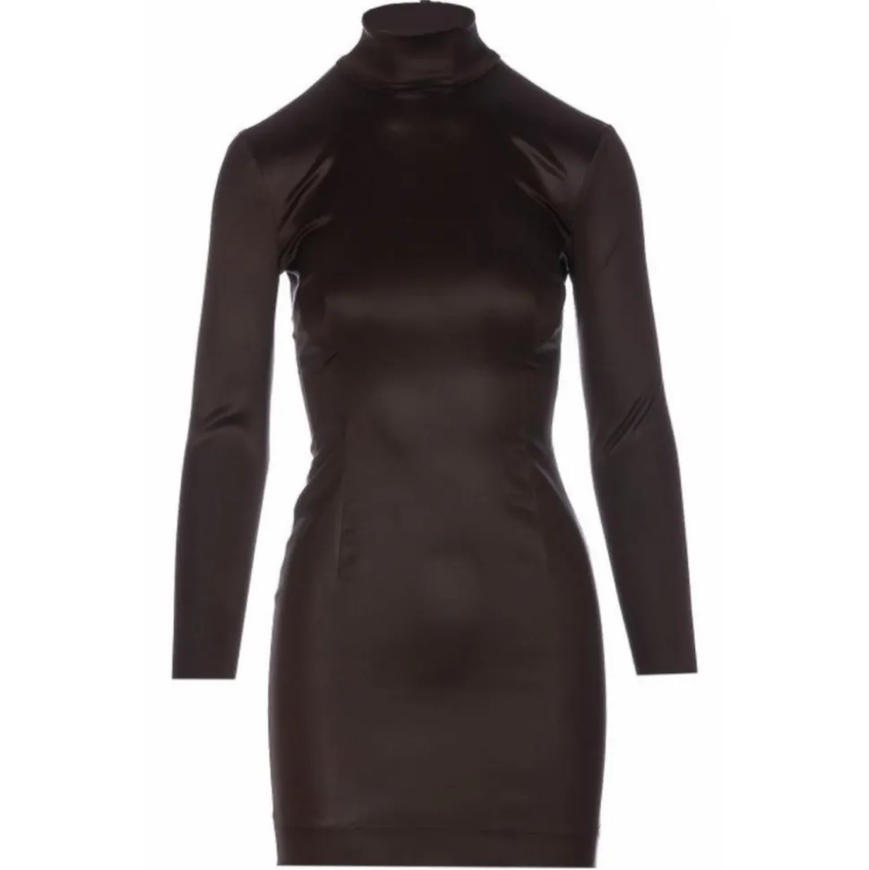 Dolce & Gabbana Brown Mini Dress. Dress with zip on the back, high neck, long sleeves, tight fit mini model.