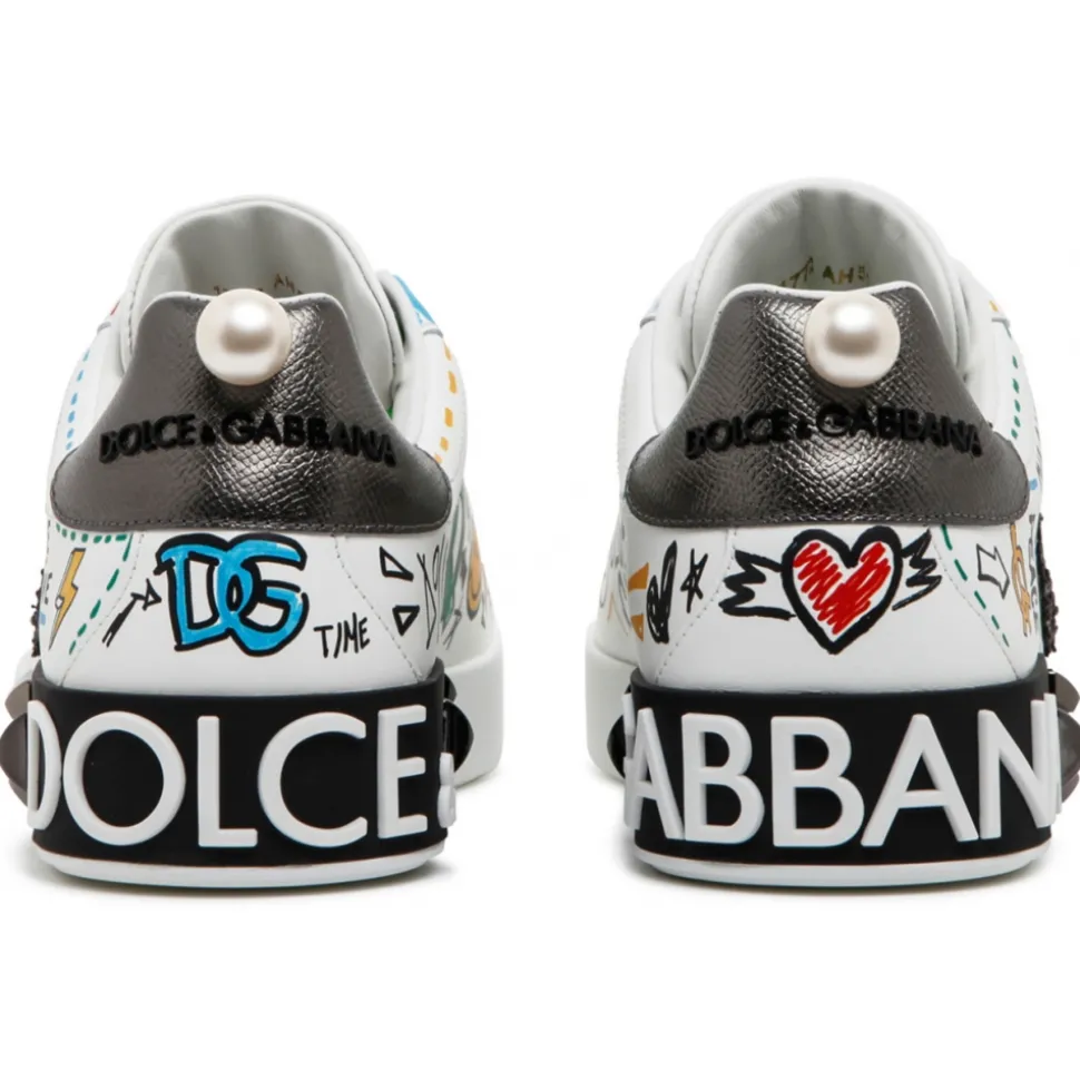 Dolce & Gabbana – White and Multicolour Calf Leather Graffiti Print Low Top Sneakers – Dolce & Gabbana Exclusive Luxury Collection