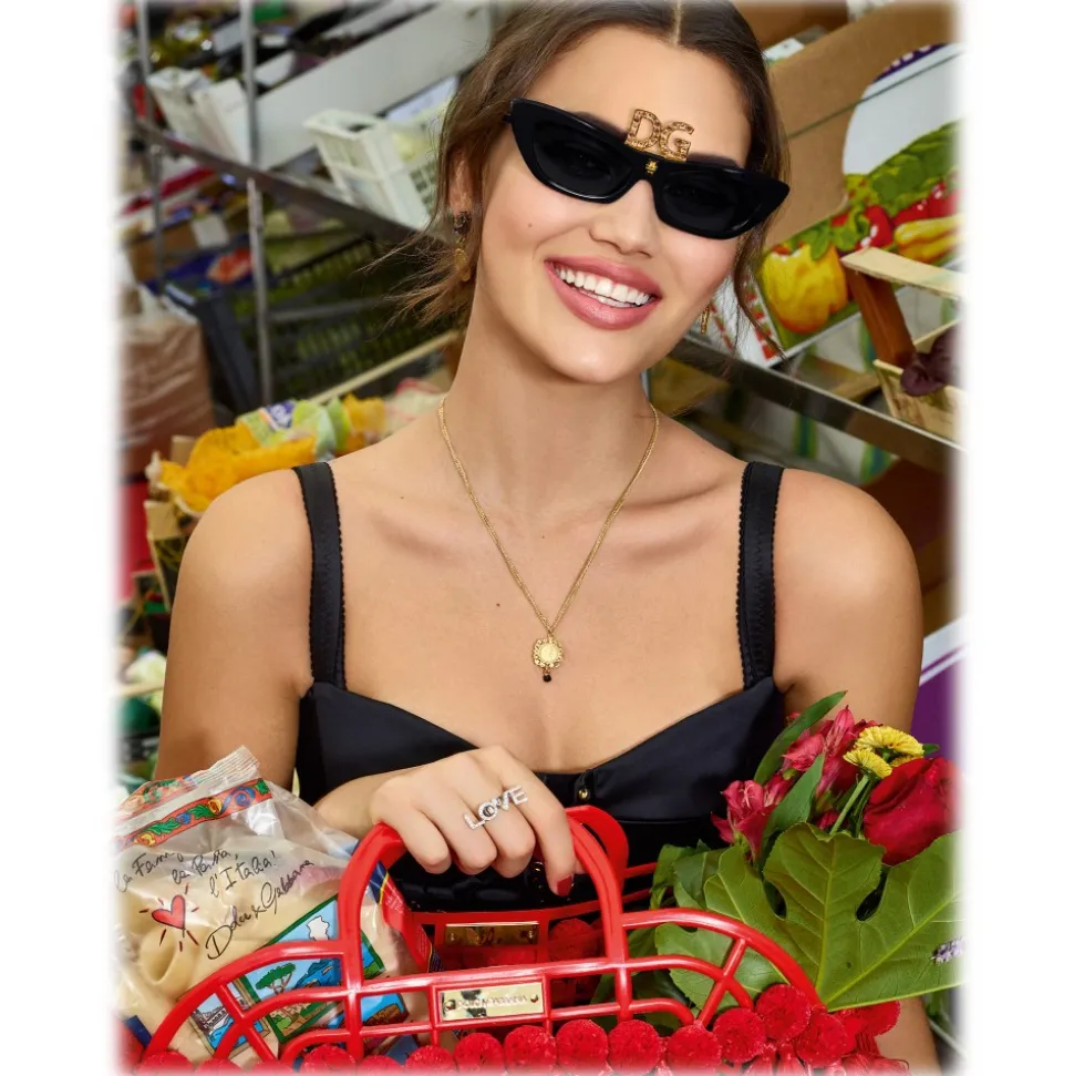 Frame in black acetate with clip-on “DG” or “CIAO” embellished with crystals