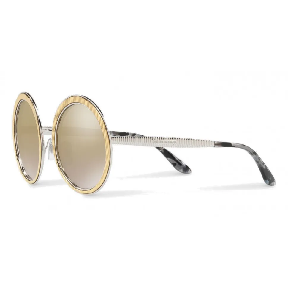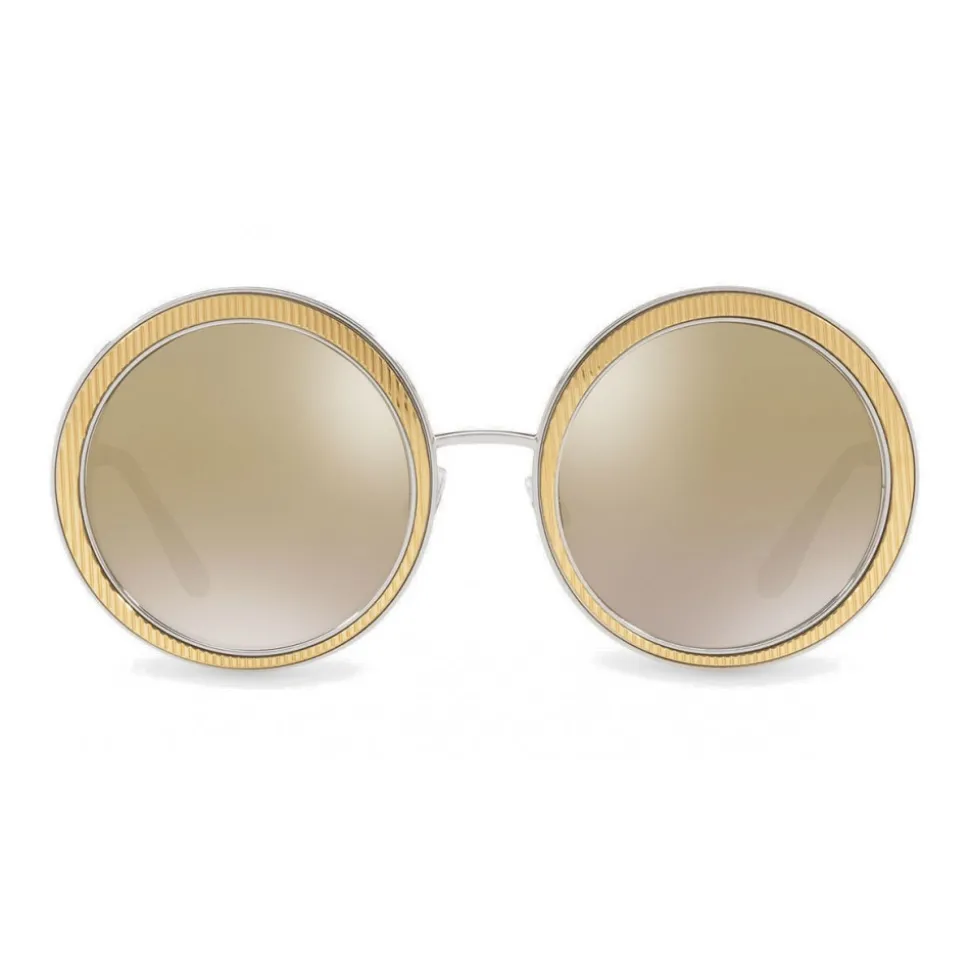 Round sunglasses with thin metal temples featuring the engraved Dolce & Gabbana logo. The front is decorated with the new grosgrain decoration. Comfort is guaranteed by adjustable nose pads.
