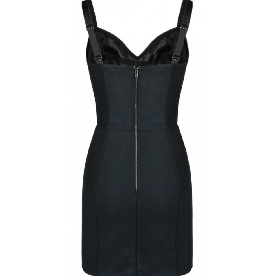 Dolce&Gabbana Corset Style Slip Dress sleeveless with adjustable shoulder straps in technical fabric and lace. Rear zipper and hook and eye fastening.