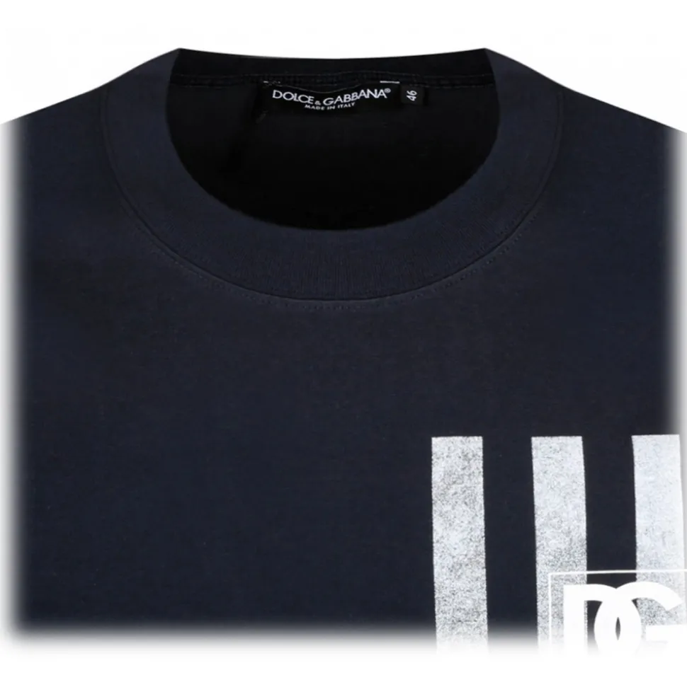 Dolce & Gabbana – Dark Blue Navy Print T-Shirt – Dolce & Gabbana Exclusive Luxury Collection