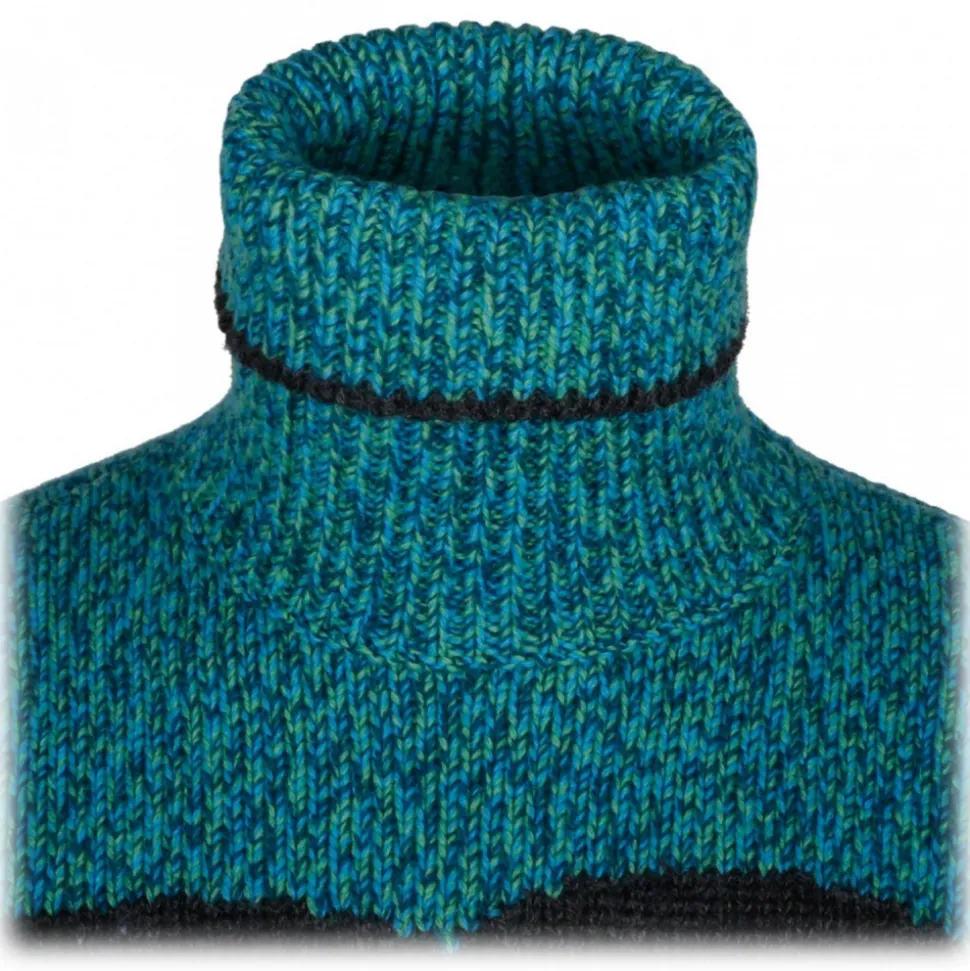 Dolce & Gabbana Sea Green and Black Wool Blend Logo Jumper. Sea Green and black wool blend jumper, mange effect, intarsia knit logo, roll neck, long sleeves, ribbed cuffs and hem, straight hem.