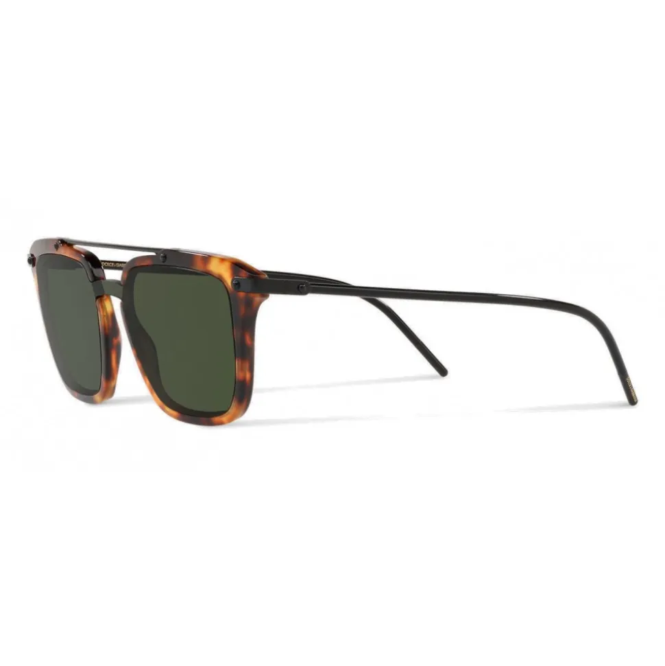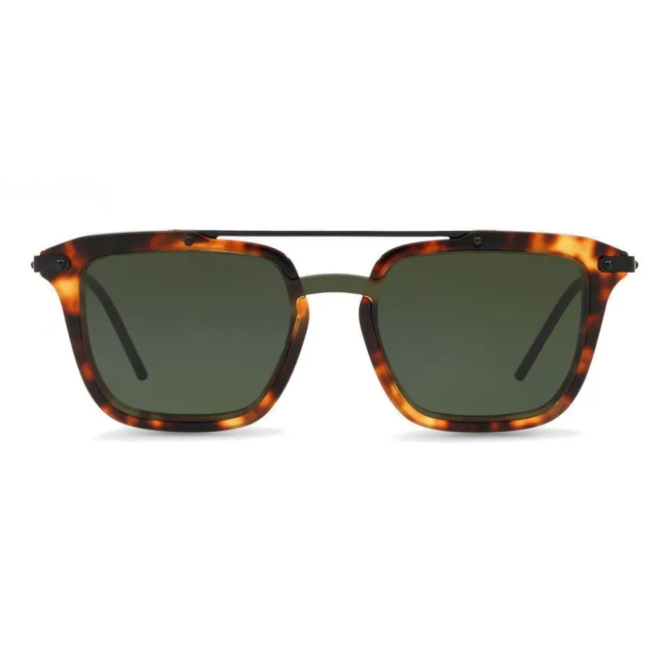 Sunglasses in acetate with a futuristic design and a square shape characterized by a double bridge and elegant metallic details.