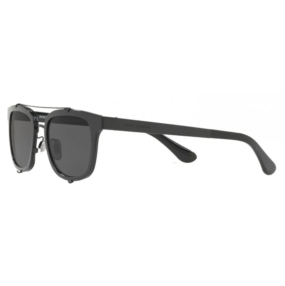 Square sunglasses with a unique lens incorporated into the metal frame. The temples are customized by the iconic 45 ° diagonal cut and the Dolce & Gabbana logo. Adjustable nose pads for a perfect fit and greater comfort.