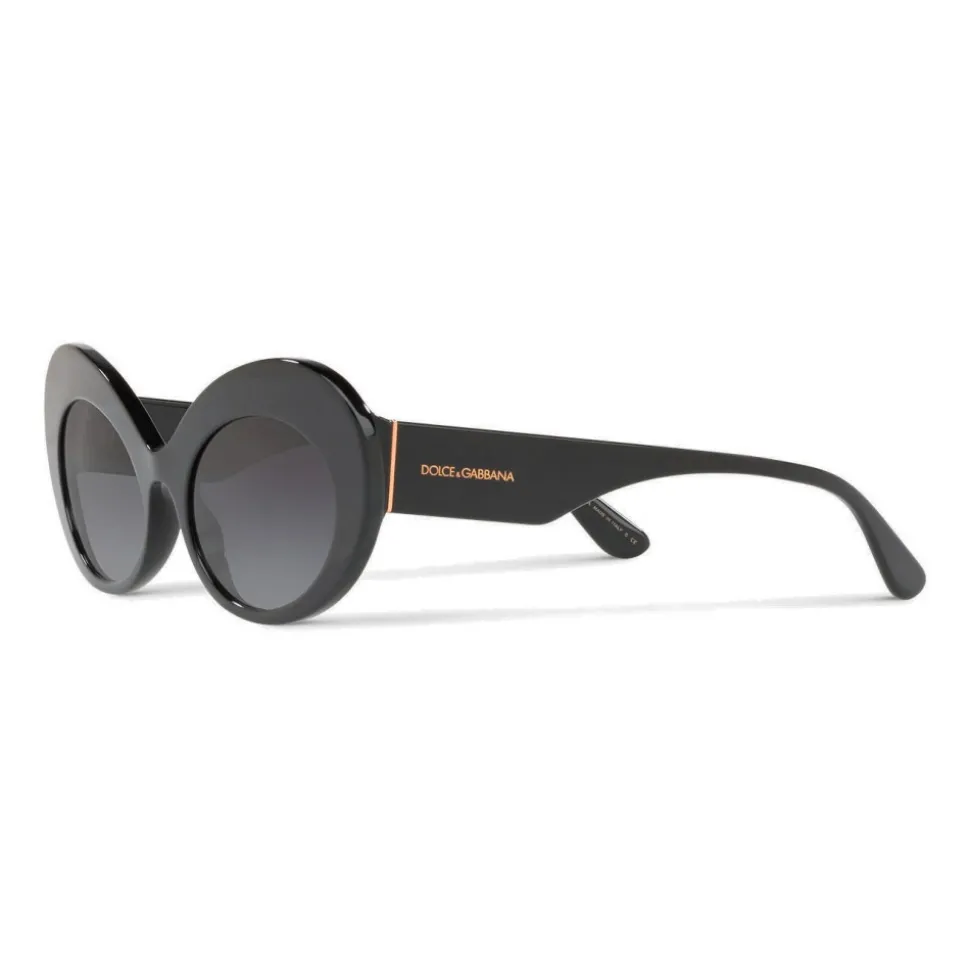 Acetate sunglasses with an oval shape. The temples are sinuous and personalized with the Dolce & Gabbana logo.