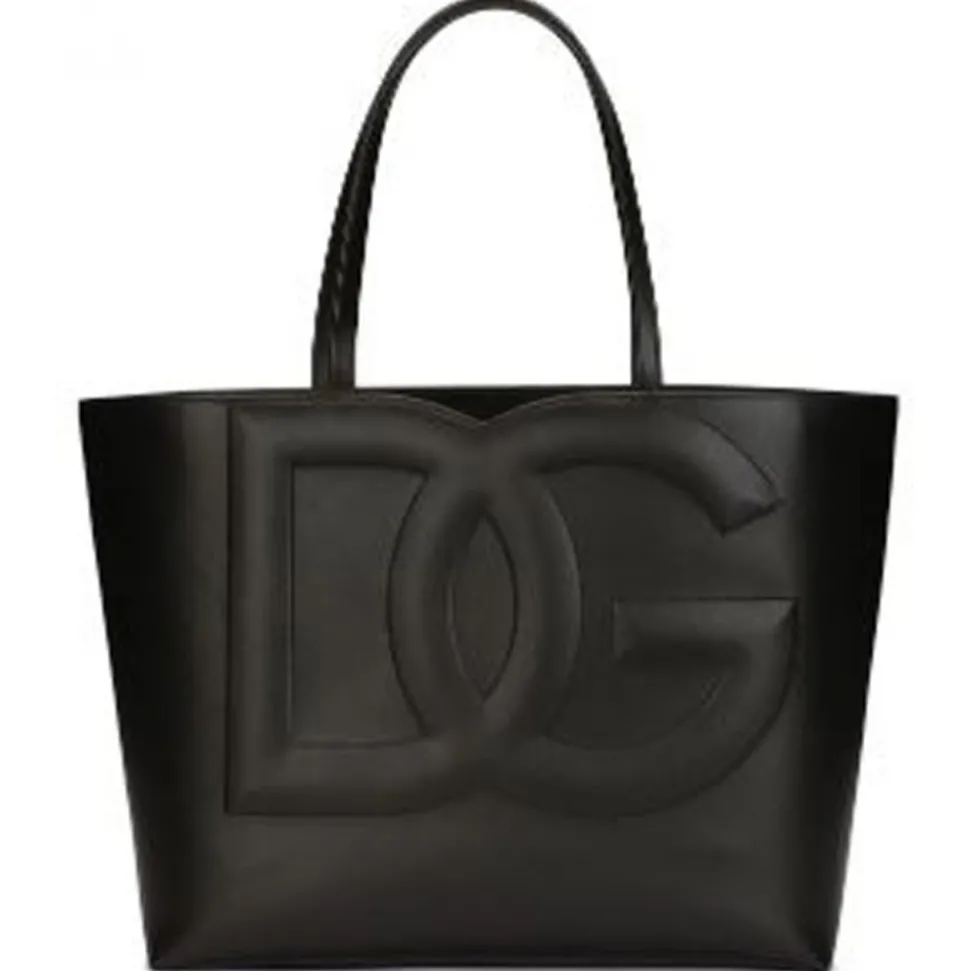 Dolce & Gabbana Tote Bag Black, Calfskin top handles, printed fabric lining, zip pocket and flat pocket