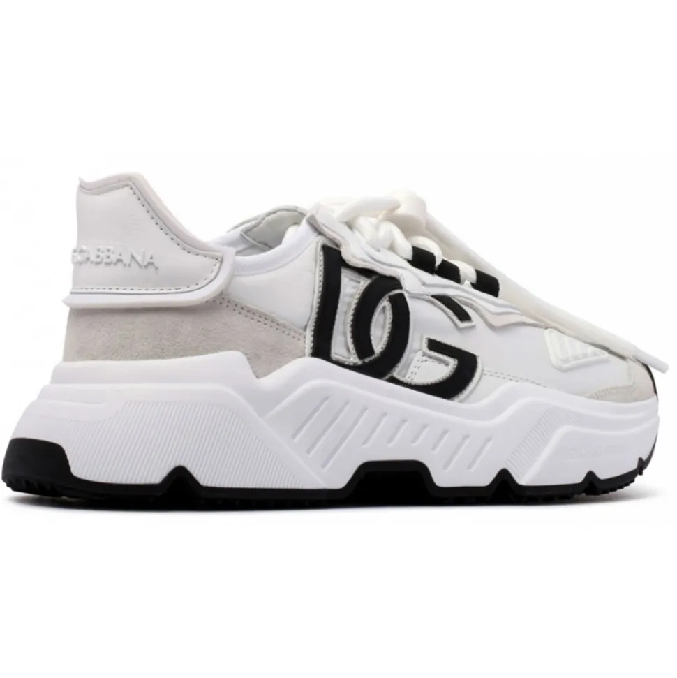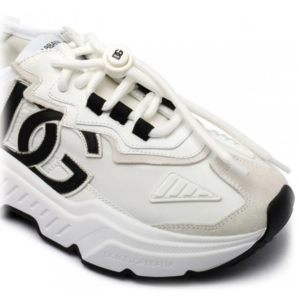 Dolce & Gabbana White Day Master Sneakers. White nylon upper sneakers, branded heel cup, tubular laces with drawstring. Calfskin footbed with branded label, extra light rubber bottom assembly.