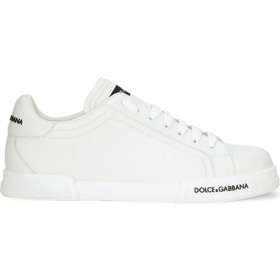 Dolce & Gabbana White Low Top Sneakers. White calf leather sneakers, front lace up fastening, round toe, flat sole, contrasting logo label, iconic monogram applied on the front tongue and sole.