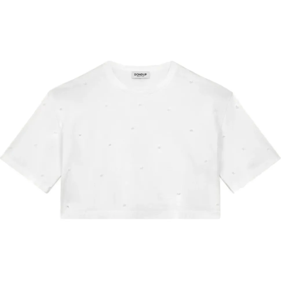 Dondup – Cropped T-shirt with Beaded Detail – White – T-shirt – Luxury Exclusive Collection