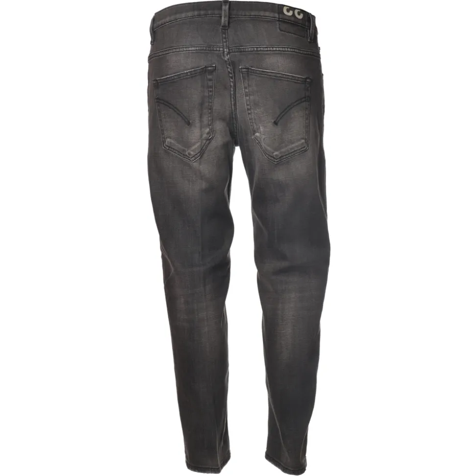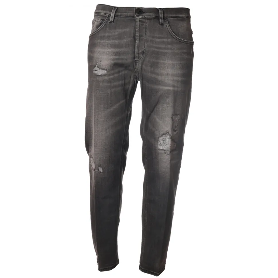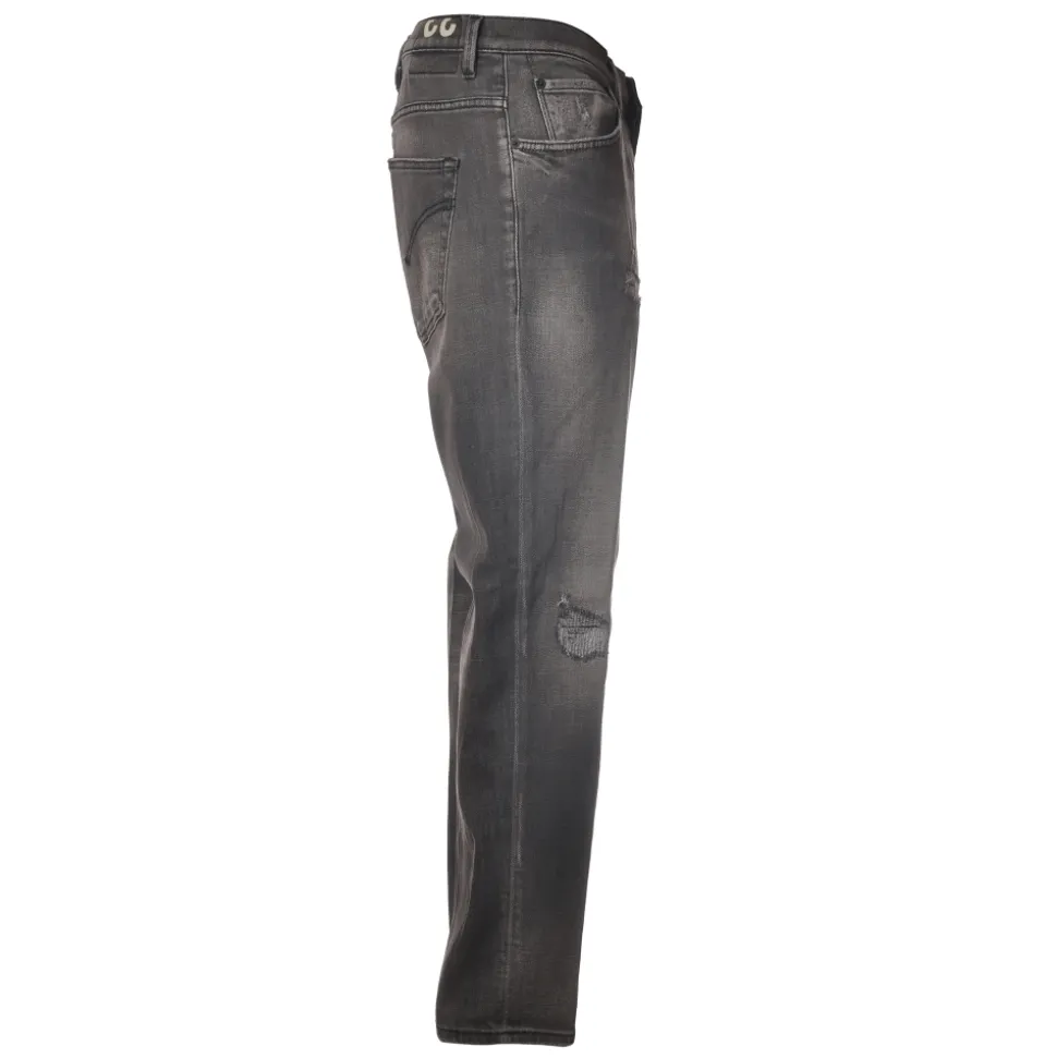 Dondup jeans, five-pocket model with straight leg, in faded black denim with stitched tears.