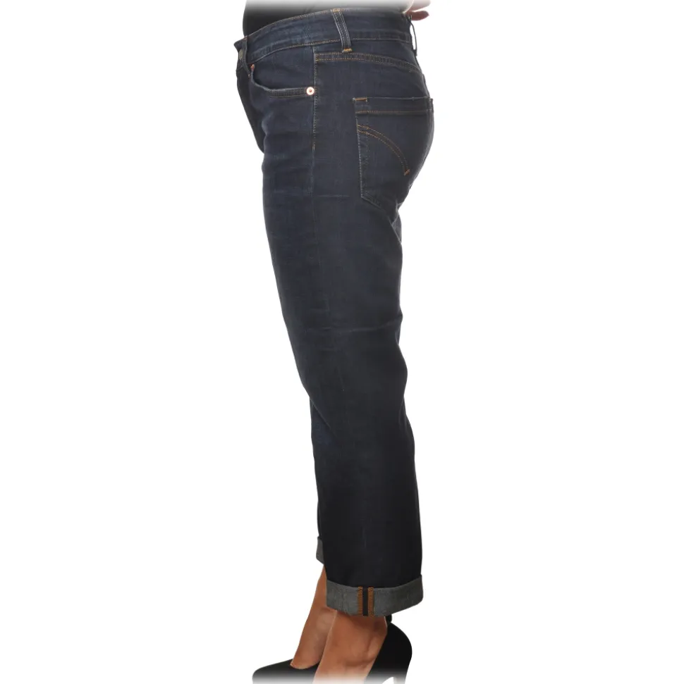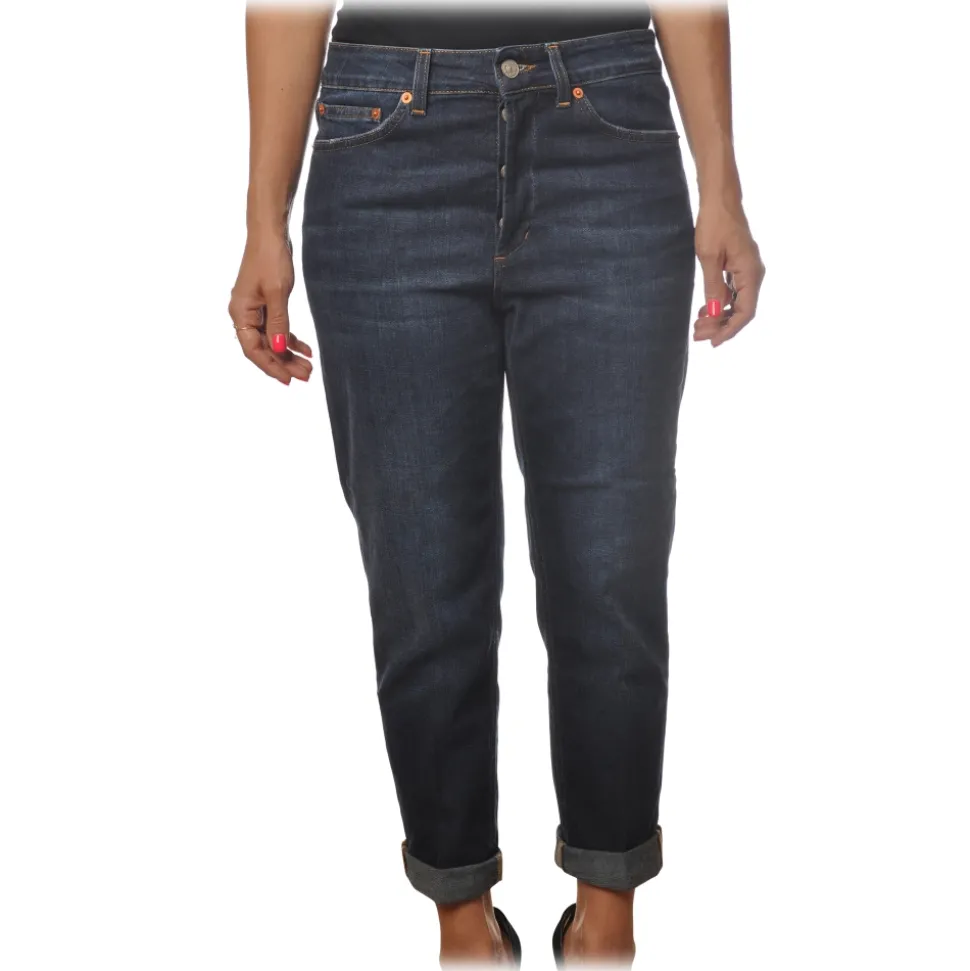 Dondup – Regular-Waist Zoe Trousers with Covered Buttons – Dark Blue – Trousers – Luxury Exclusive Collection