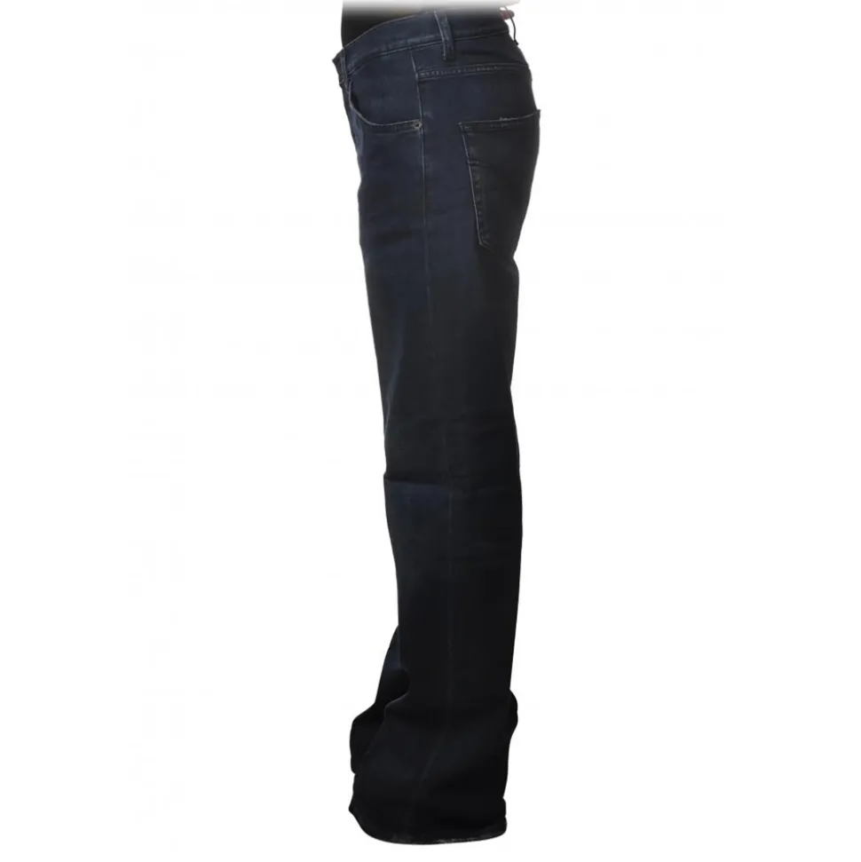Dondup jeans, five-pocket model with high waist, with straight leg in very dark denim canvas.