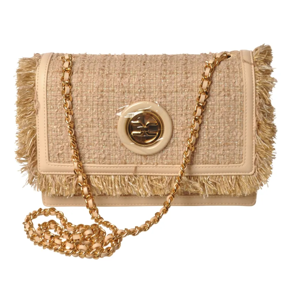 Elisabetta Franchi – Bag with ChainĀ in FabricĀ – Champagne – Bag – Made in Italy – Luxury Exclusive CollectionĀ