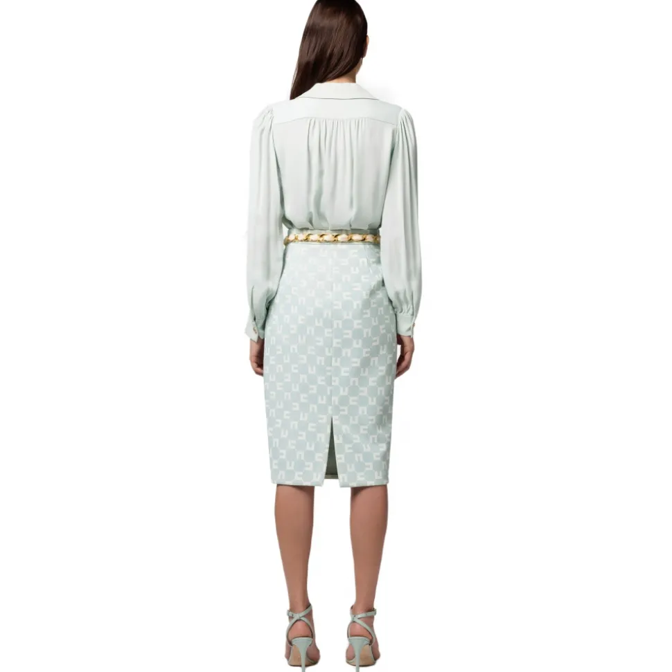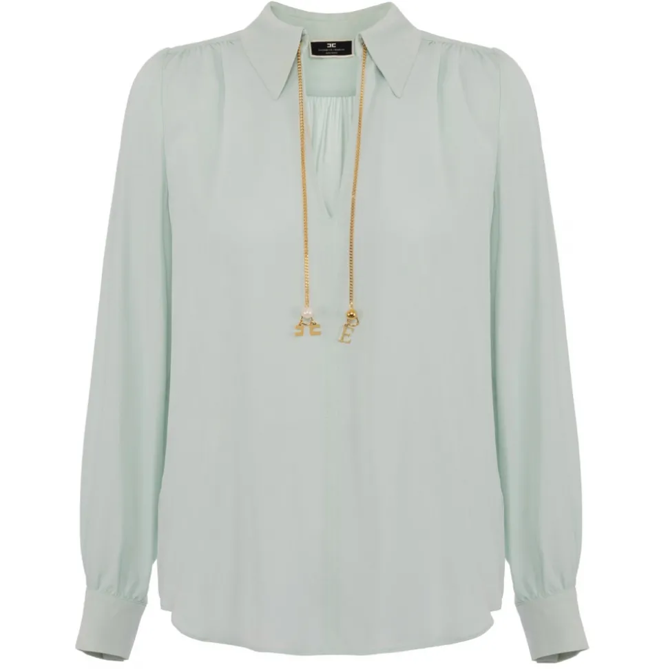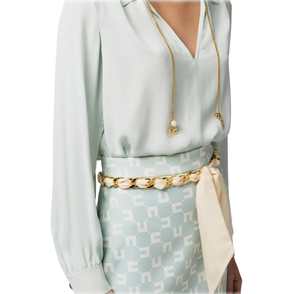 Elisabetta Franchi – Blouse with Chain Detail – Light Blue – Shirt – Made in Italy – Luxury Exclusive Collection