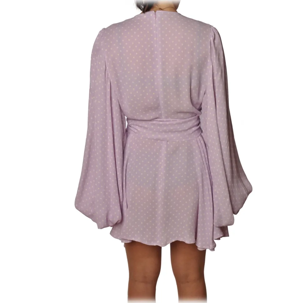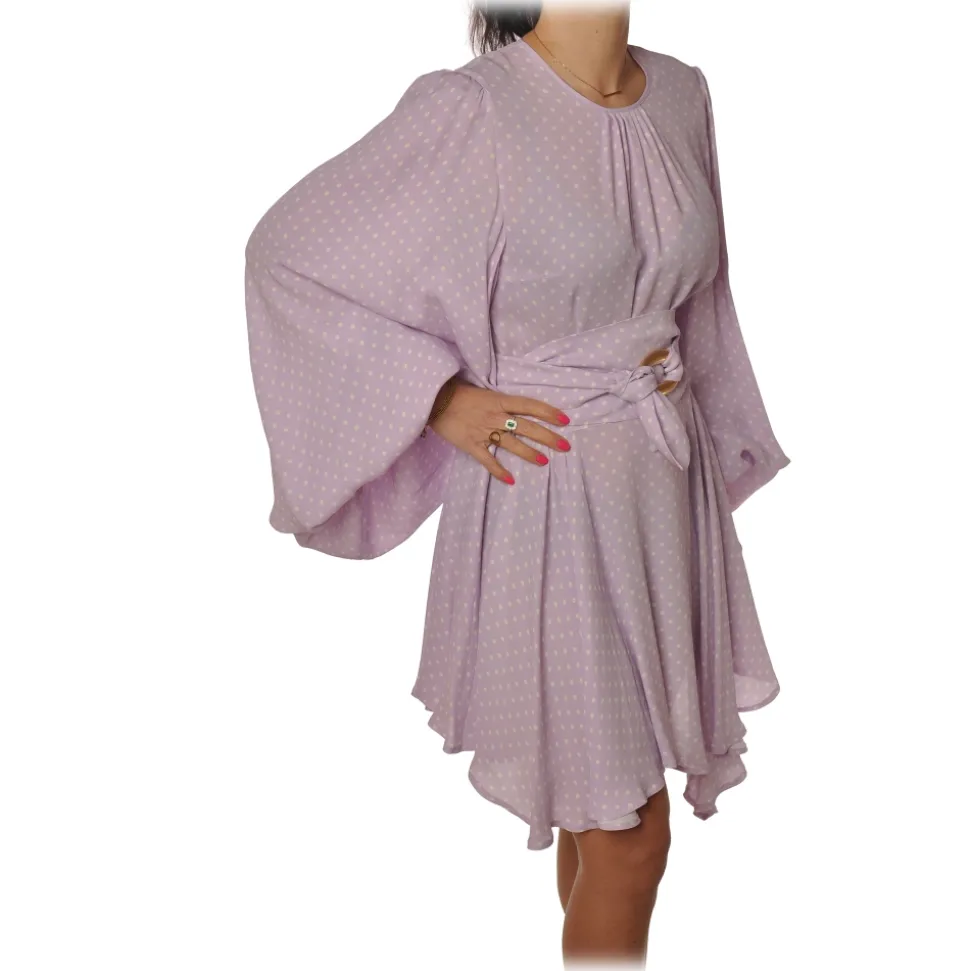Elisabetta Franchi dress, long-sleeved crew-neck model, in polka dot pattern with asymmetrical length.