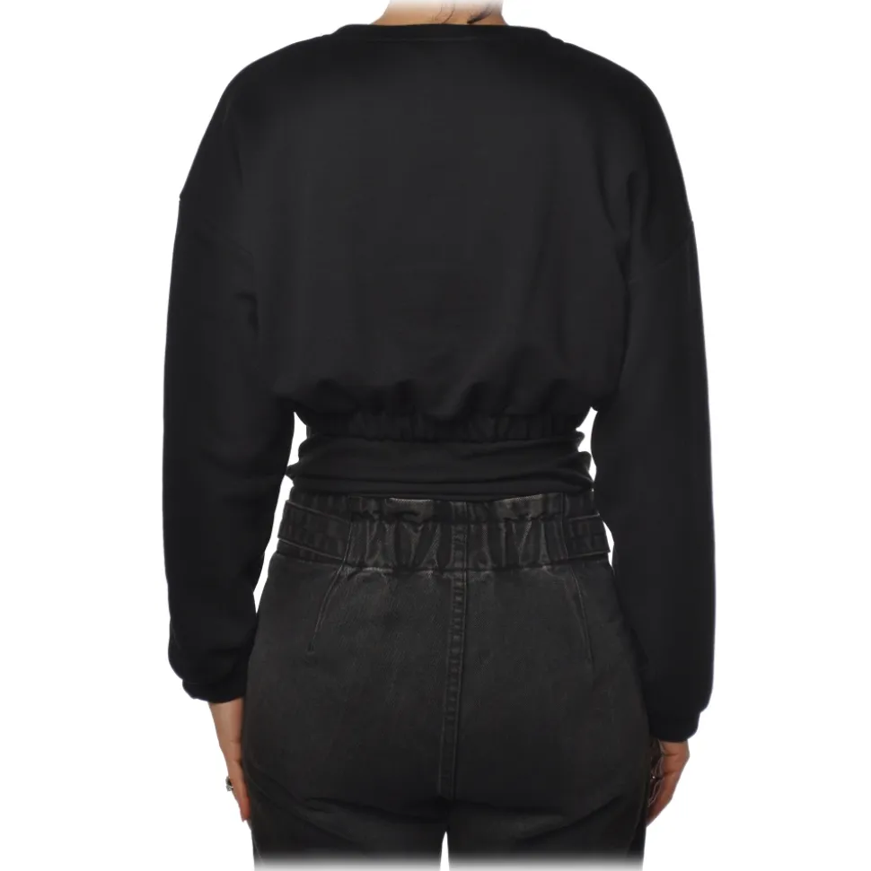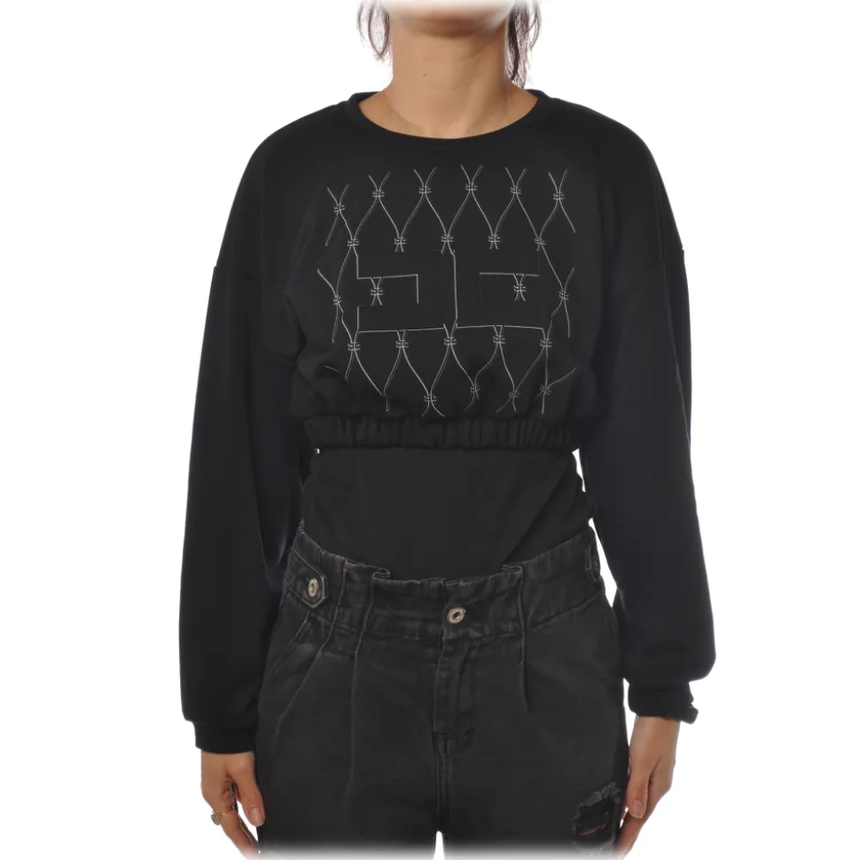Elisabetta Franchi – Cropped Sweatshirt with Print – Black – Sweatshirt – Made in Italy – Luxury Exclusive Collection