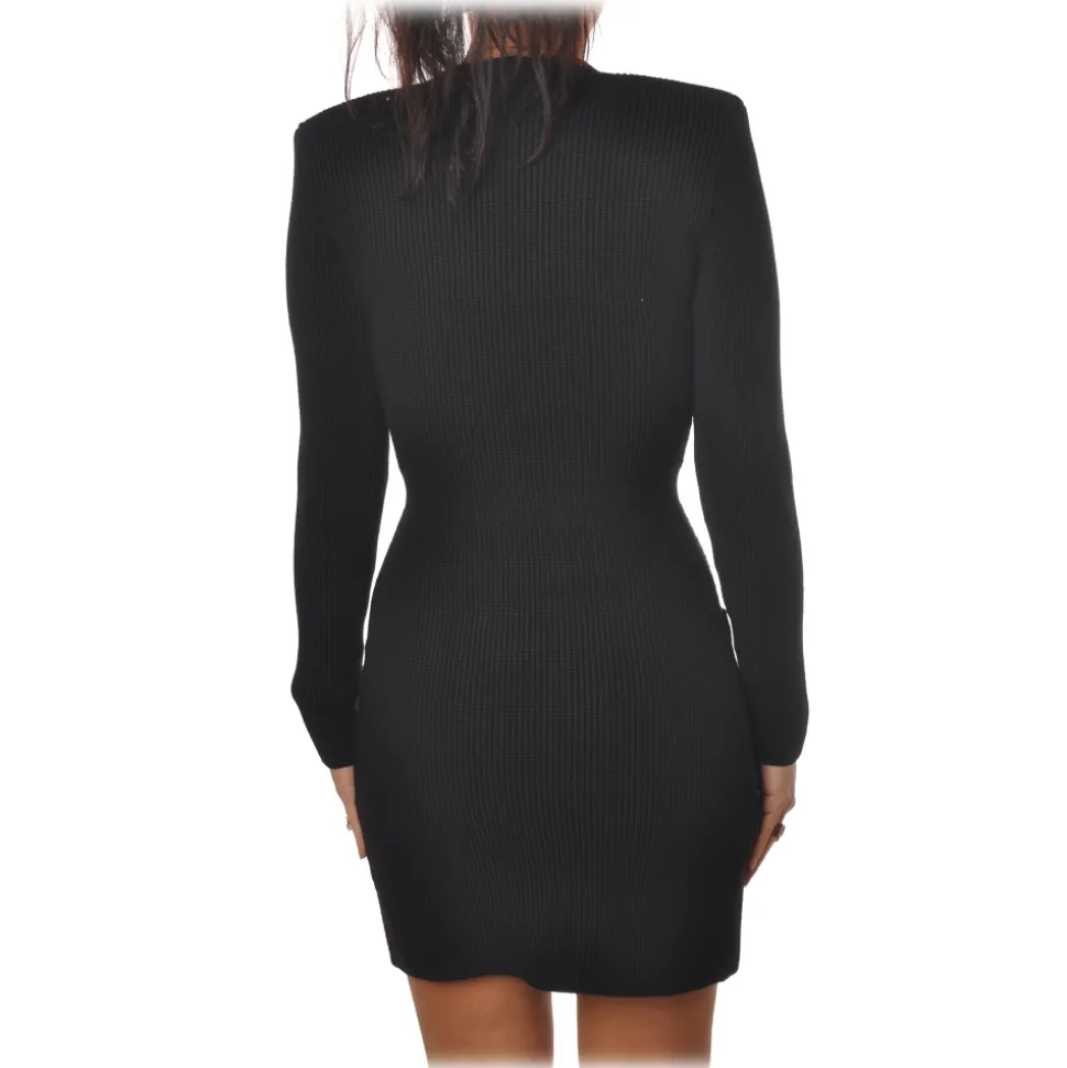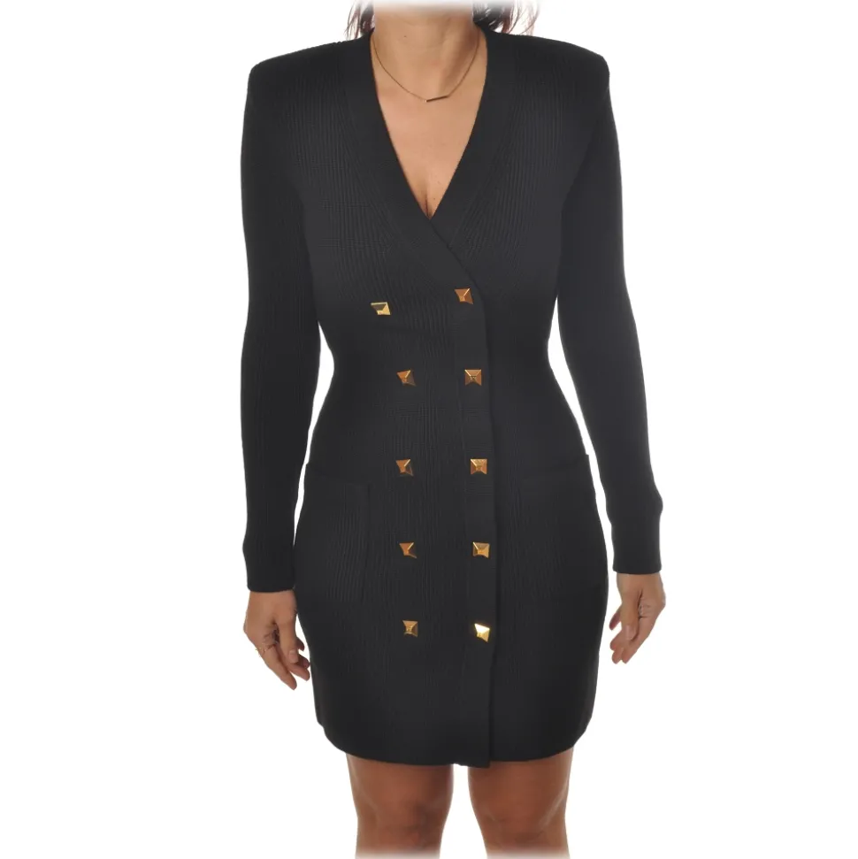 Elisabetta Franchi – Double-Breasted Dress with Jewel Buttons – Black – Dress – Made in Italy – Luxury Exclusive Collection