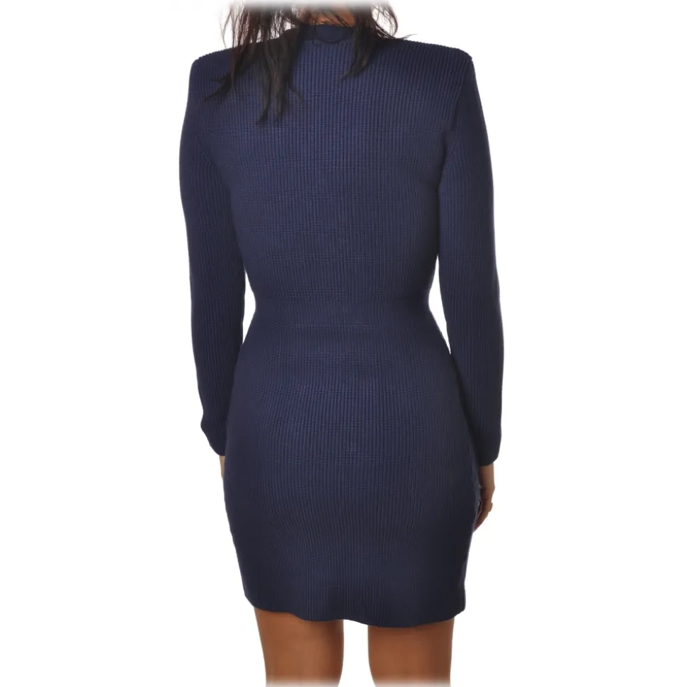 Elisabetta Franchi – Double-Breasted Dress with Jewel Buttons – Blue – Dress – Made in Italy – Luxury Exclusive Collection