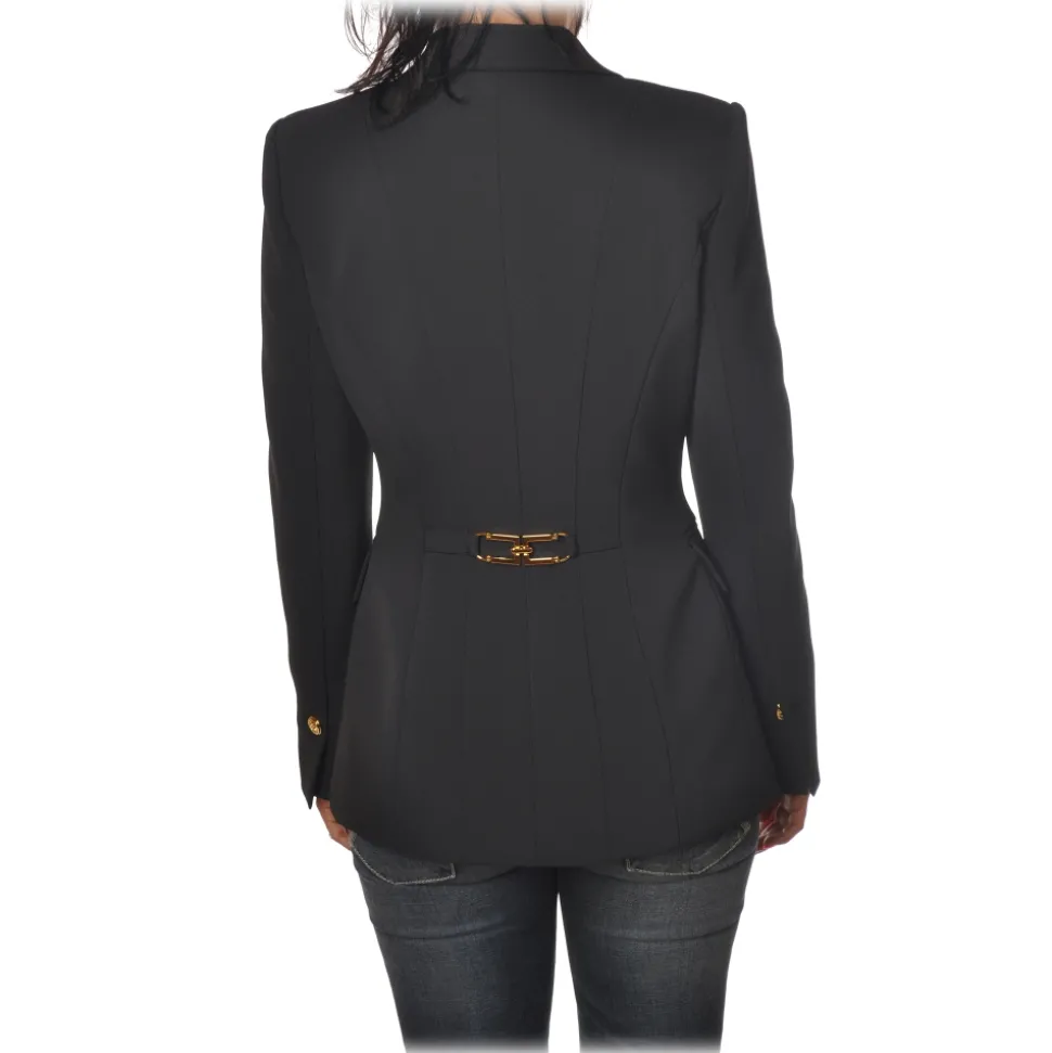 Elisabetta Franchi – Double-Breasted Screwed Jacket – Black – Jacket – Made in Italy – Luxury Exclusive Collection