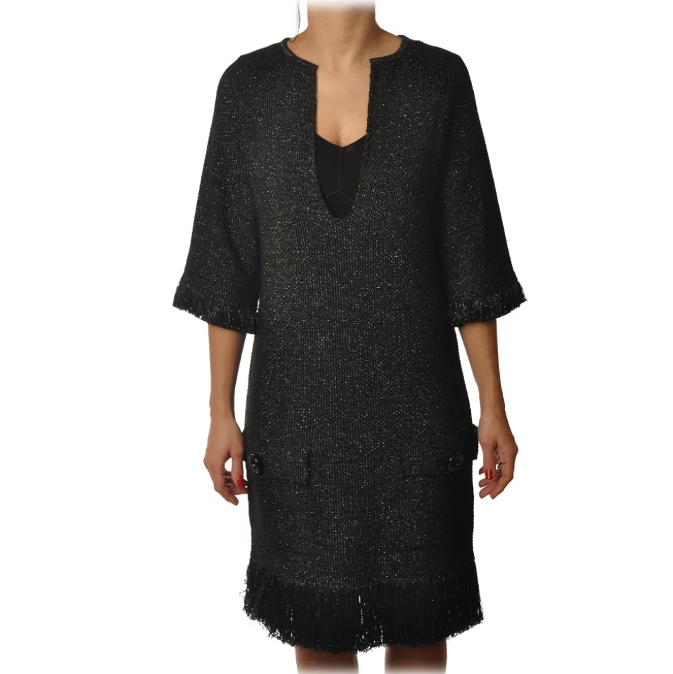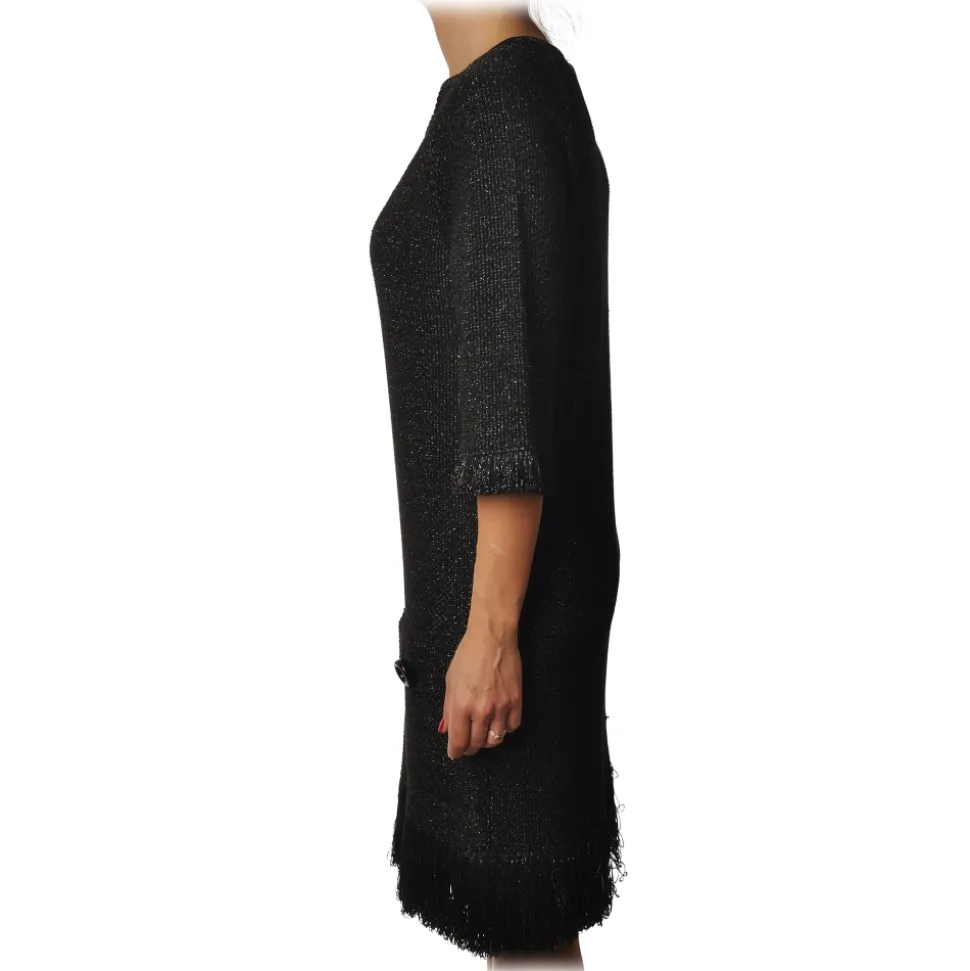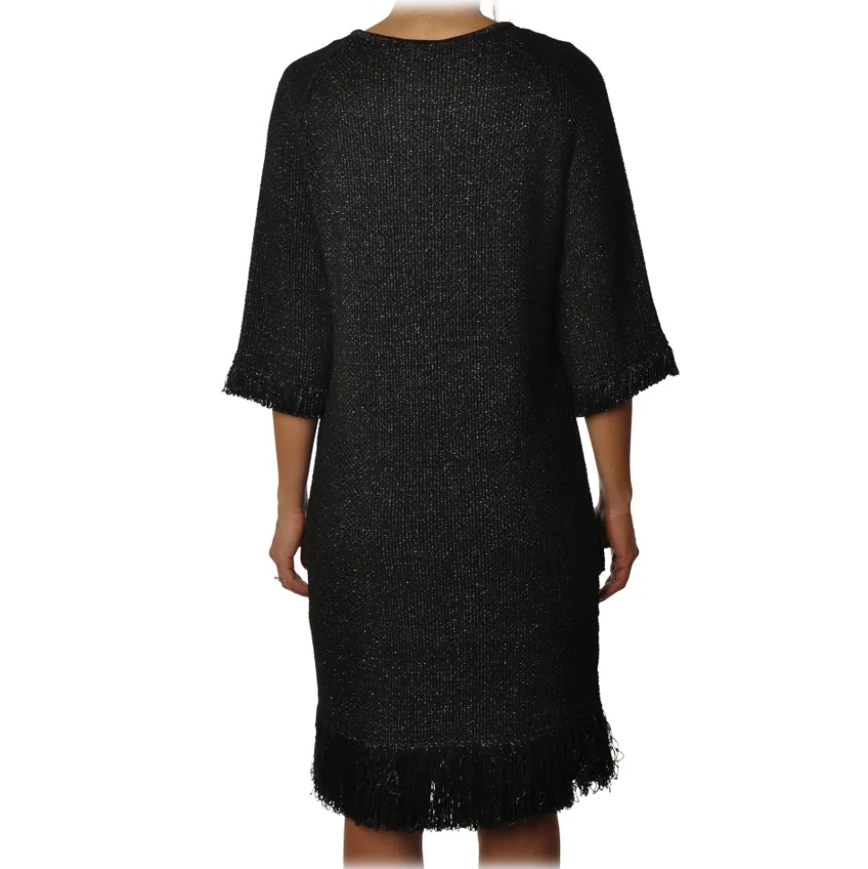 Elisabetta Franchi – Dress in Laminated Thread – Black – Dress – Made in Italy – Luxury Exclusive Collection