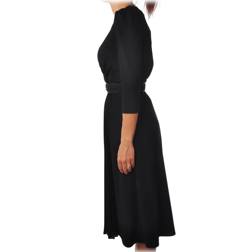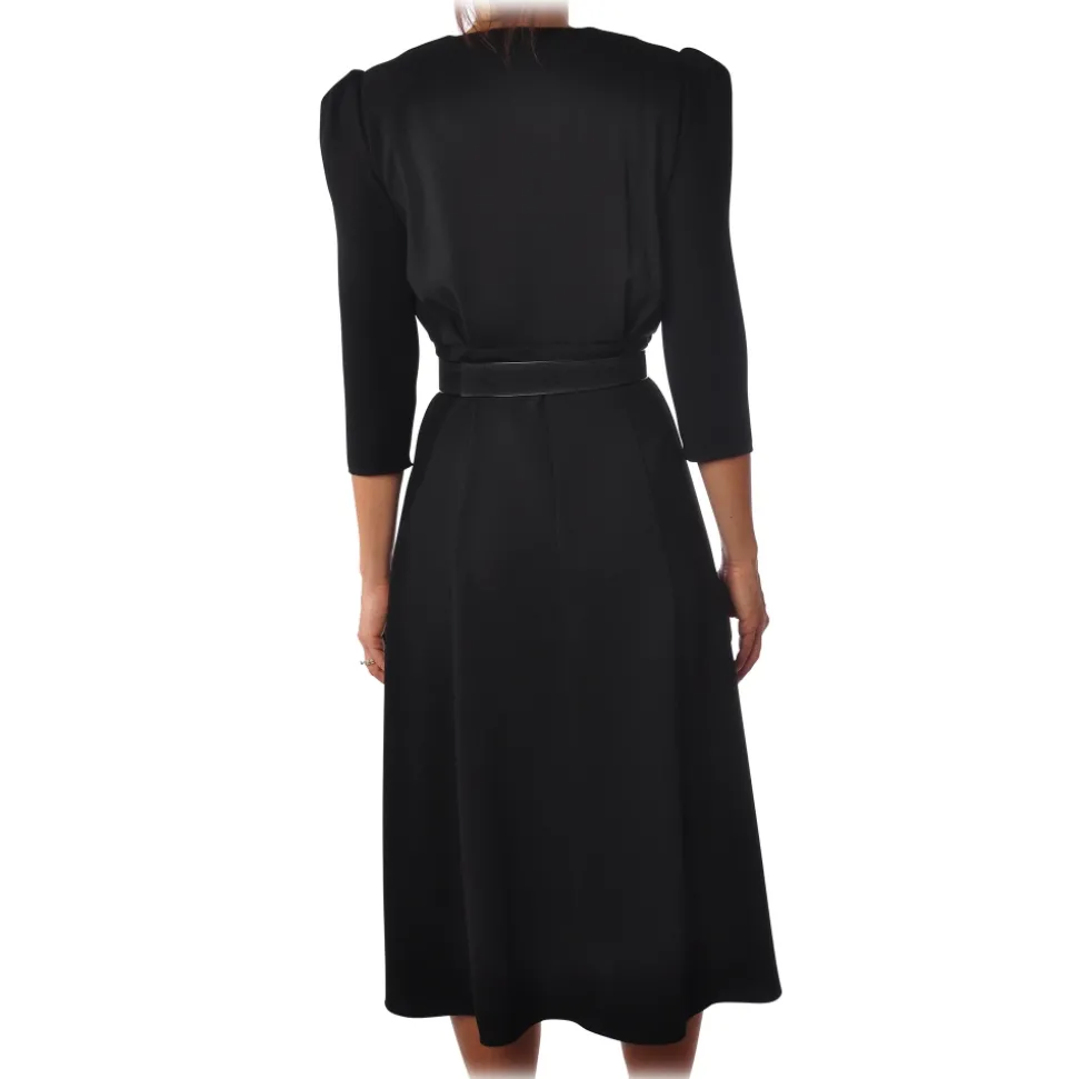 Elisabetta Franchi – Dress with Leather Belt – Black – Dress – Made in Italy – Luxury Exclusive Collection
