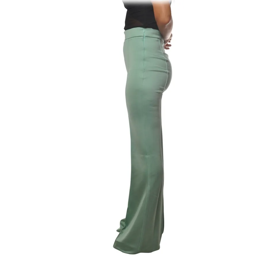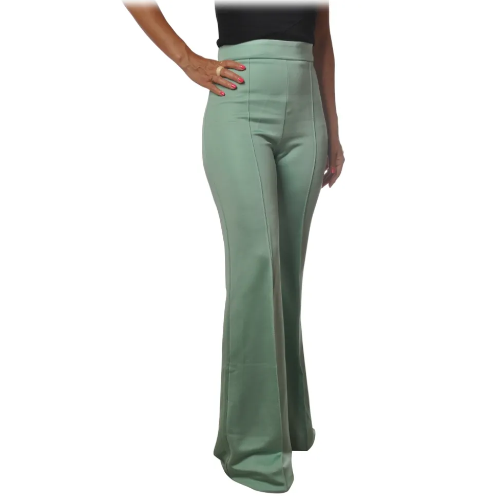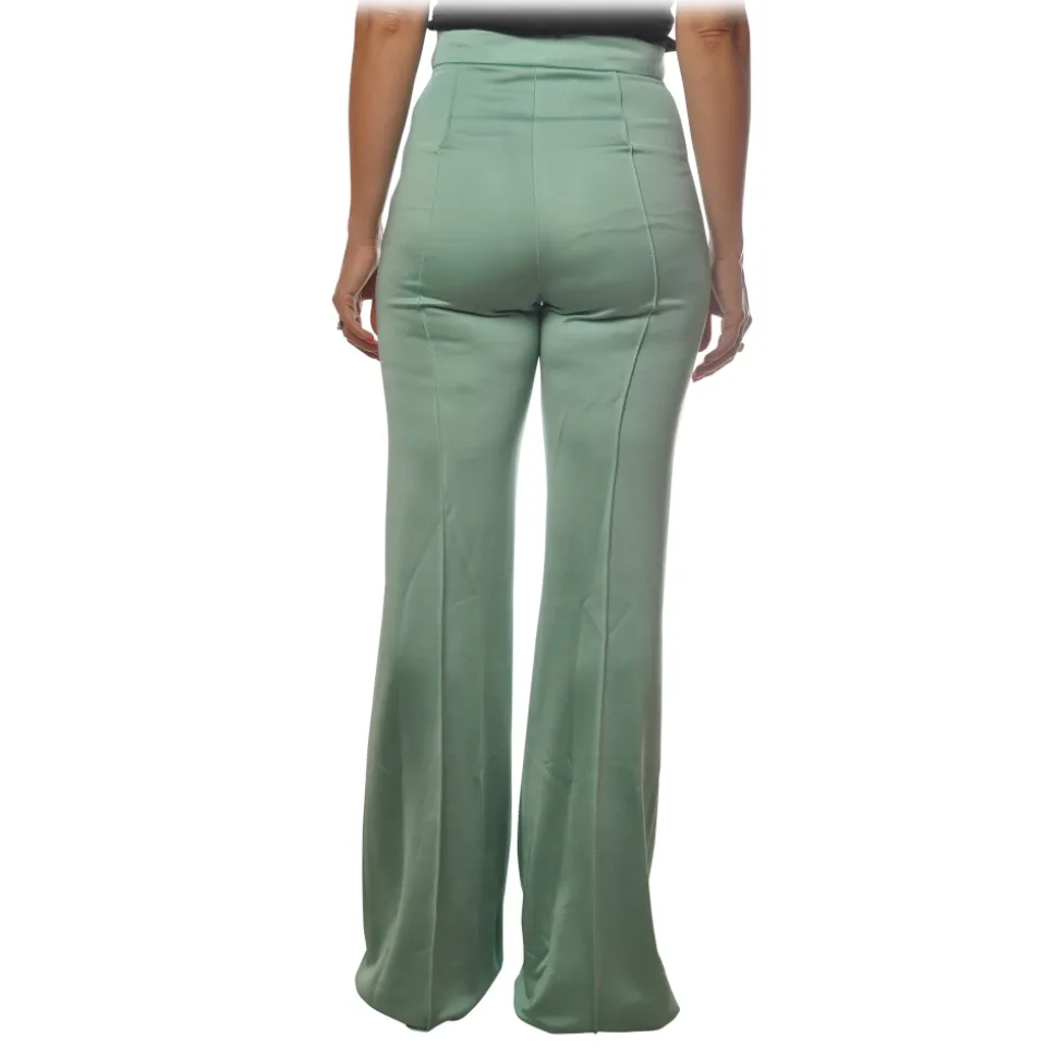 Elisabetta Franchi – High Waisted Wide Leg Trousers – Tiffany Green – Trousers – Made in Italy – Luxury Exclusive Collection