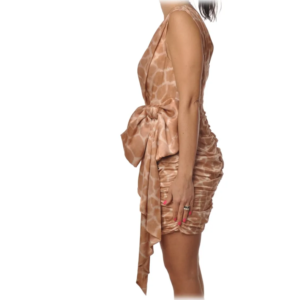 Elisabetta Franchi dress, sleeveless sheath model with V-neck, with side bow, in giraffe print fantasy.