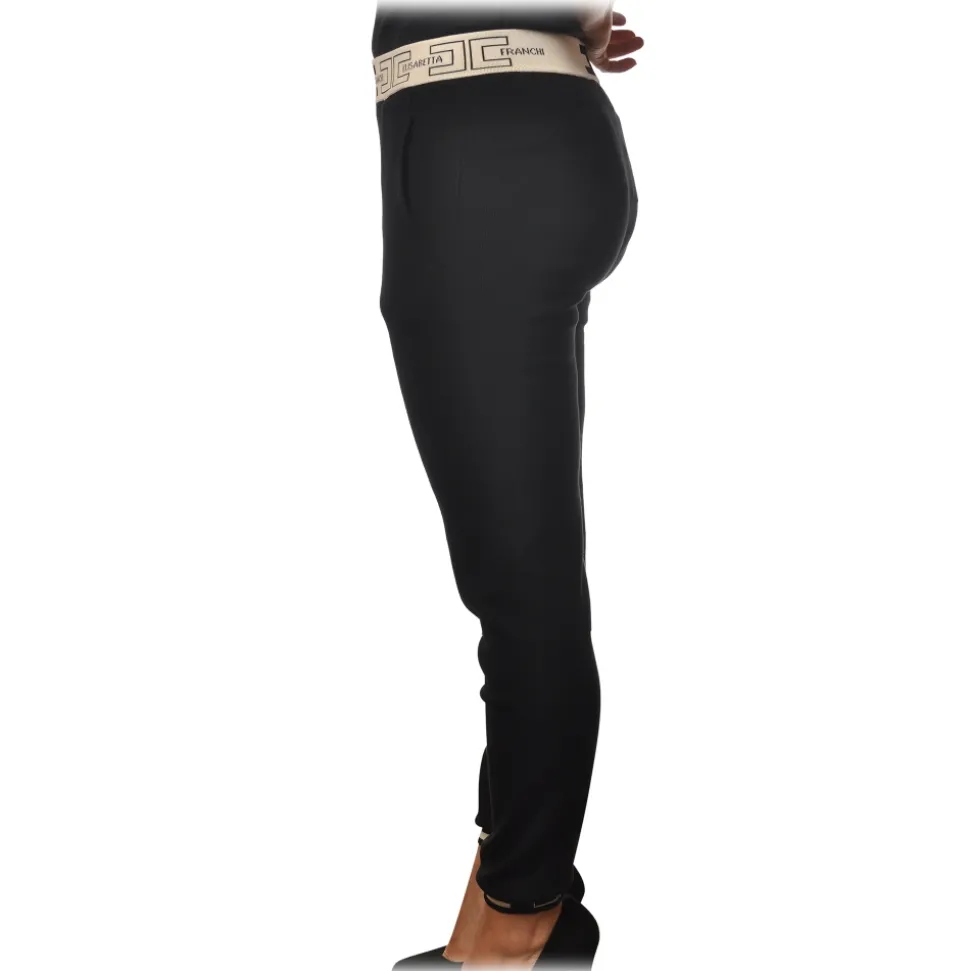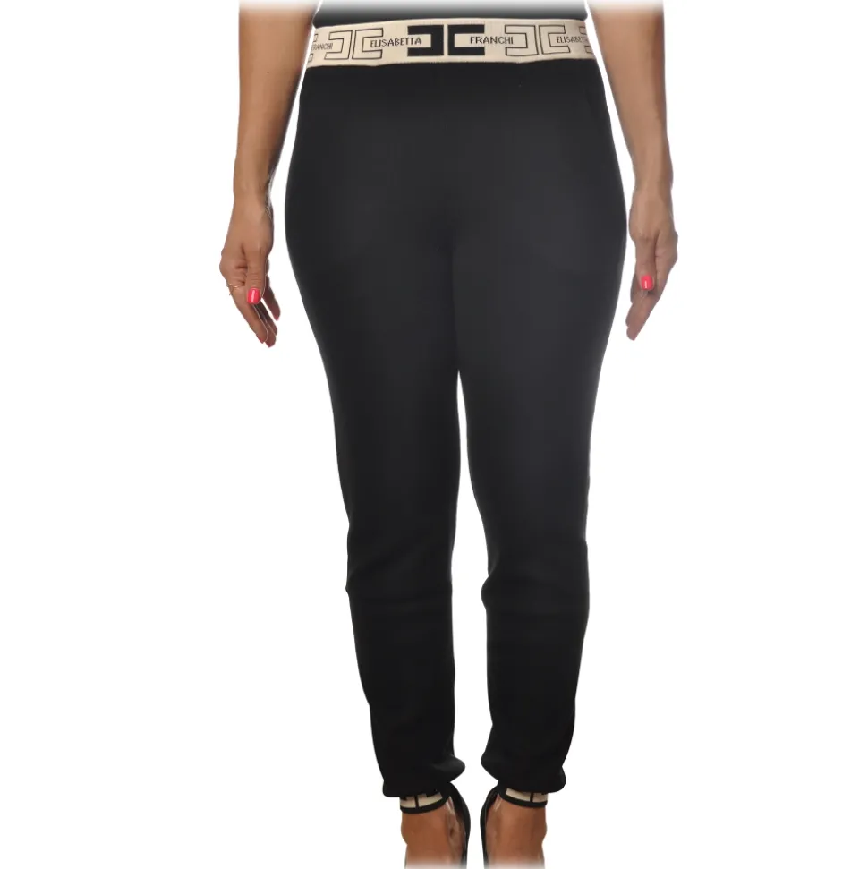 Elisabetta Franchi – Sporty Trousers with Logoed Elastic – Black – Trousers – Made in Italy – Luxury Exclusive Collection