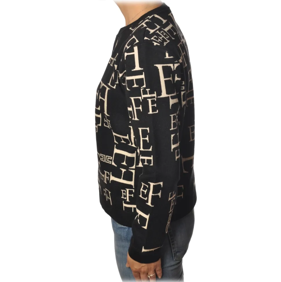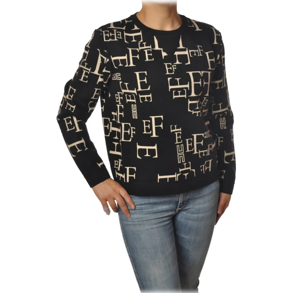 Elisabetta Franchi – Sweater in Logoed Pattern – Black – Pullover – Made in Italy – Luxury Exclusive Collection