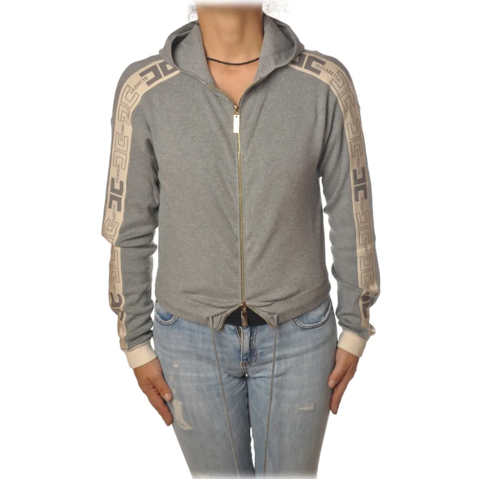 Elisabetta Franchi – Sweatshirt with Logo Profiled Bands – Grey – Sweatshirt – Made in Italy – Luxury Exclusive Collection