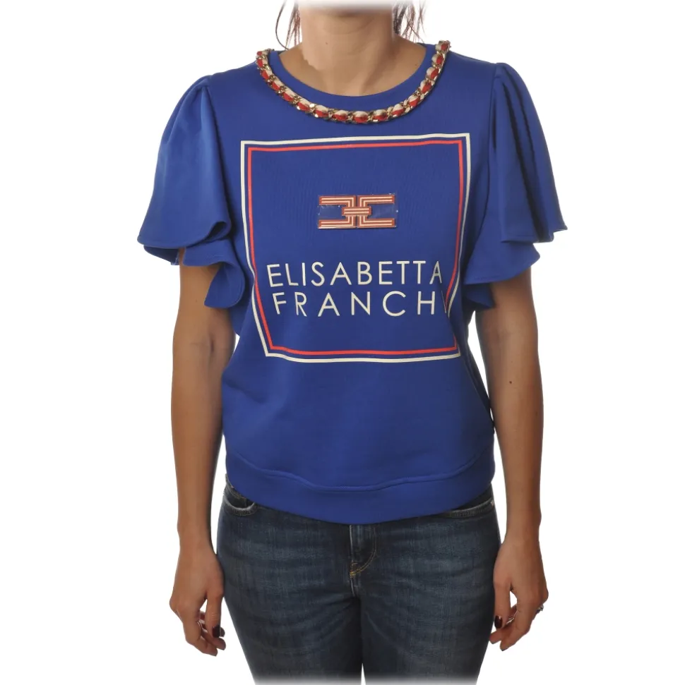 Elisabetta Franchi – Sweatshirt with Short Sleeves Logo – Blue – Sweatshirt – Made in Italy – Luxury Exclusive Collection