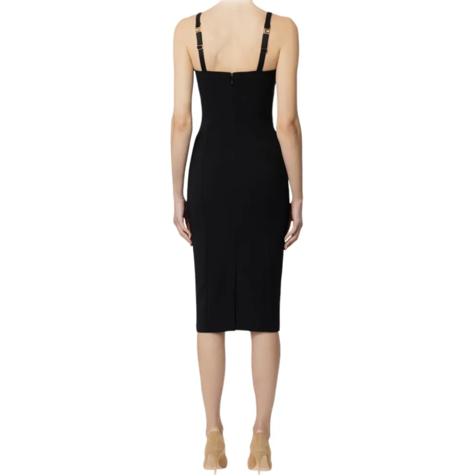Elisabetta Franchi – Sweetheart Neckline Longuette Dress – Black – Dress – Made in Italy – Luxury Exclusive Collection