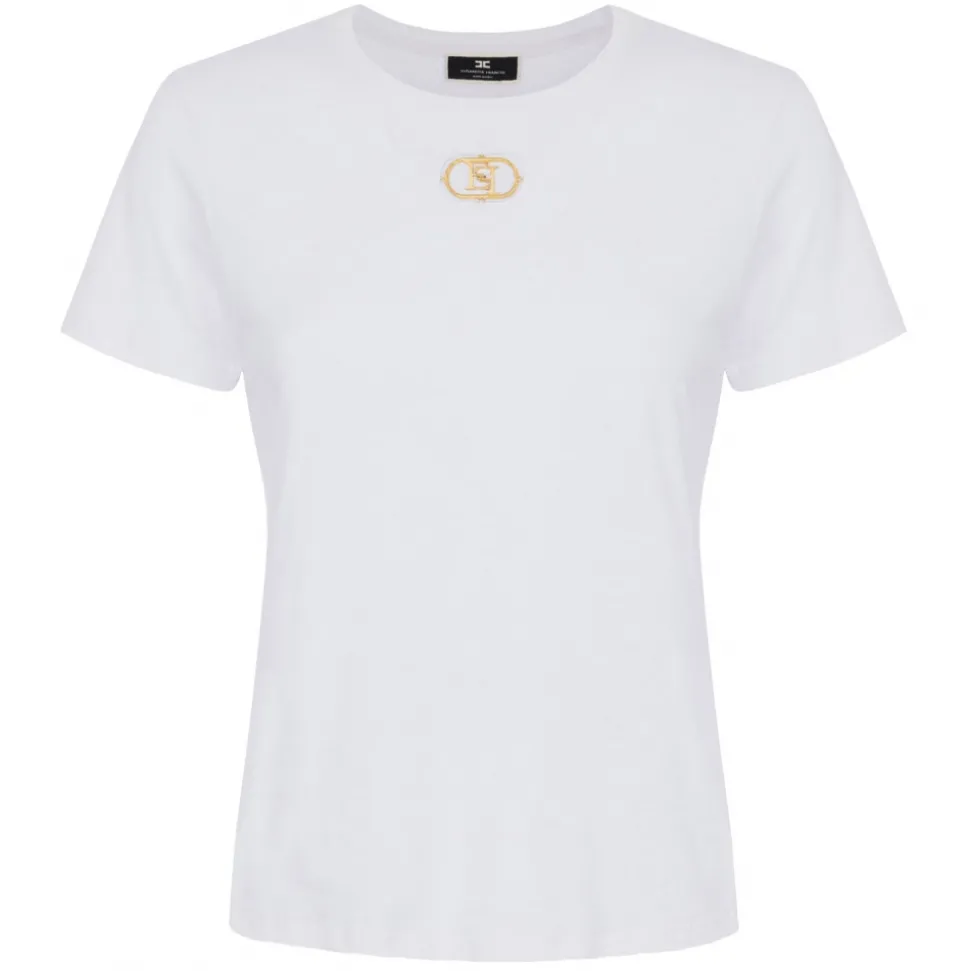 Elisabetta Franchi – T-Shirt with Metal Logo Application – White – T-Shirt – Made in Italy – Luxury Exclusive Collection