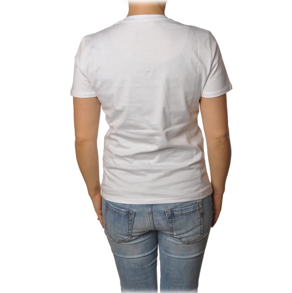 Elisabetta Franchi – T-Shirt with Perforated Metallic Logo – White – T-Shirt – Made in Italy – Luxury Exclusive Collection