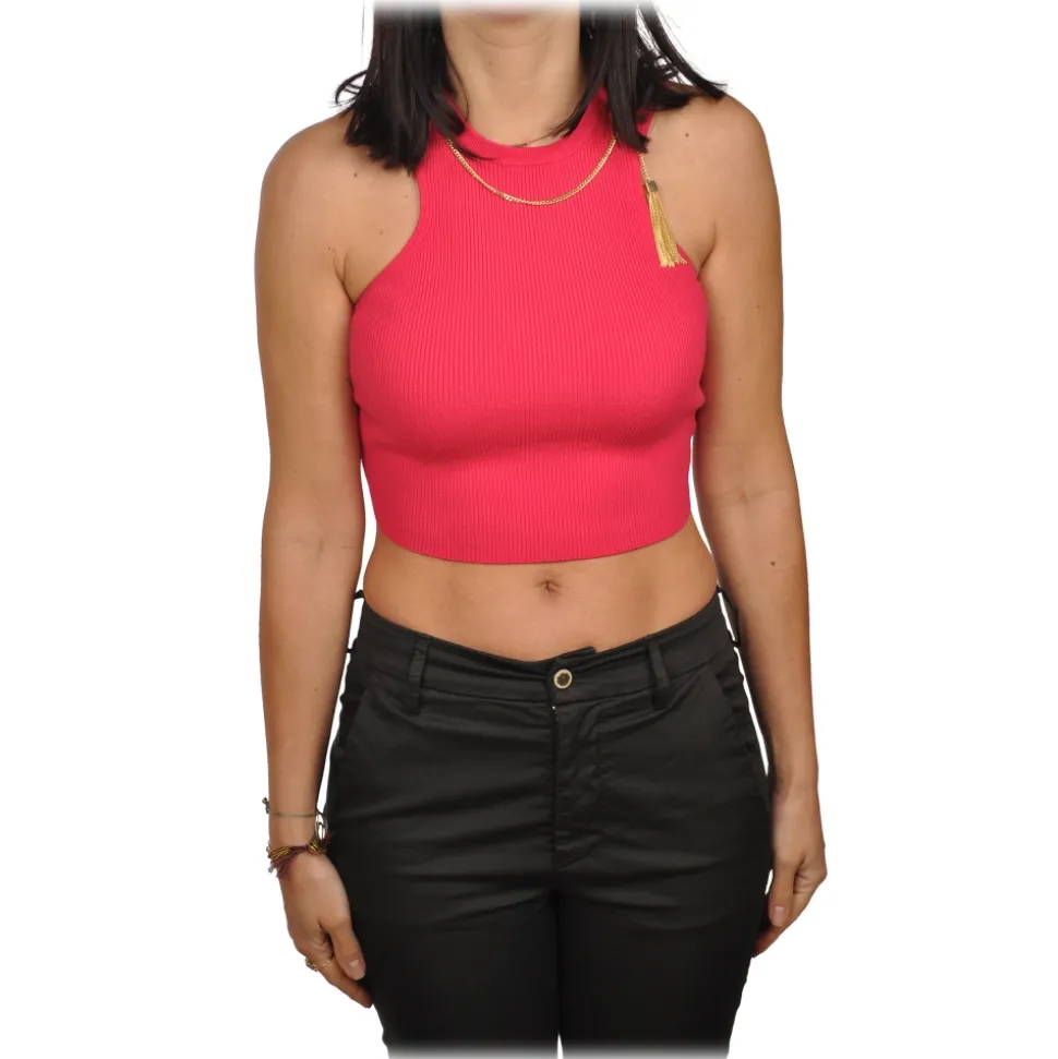 Elisabetta Franchi – Top with Gold Chain Detail – Fucsia – Top – Made in Italy – Luxury Exclusive Collection
