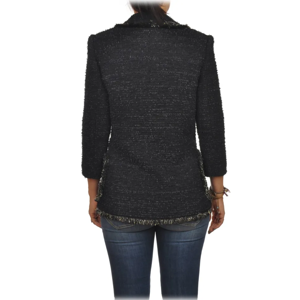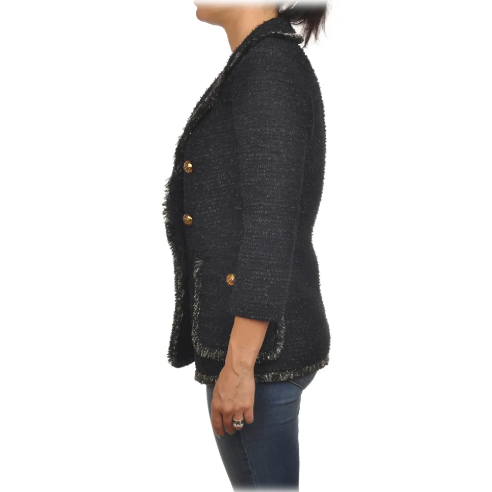 Elisabetta Franchi – Tweed Double-Breasted Blazer – Black – Jacket – Made in Italy – Luxury Exclusive Collection