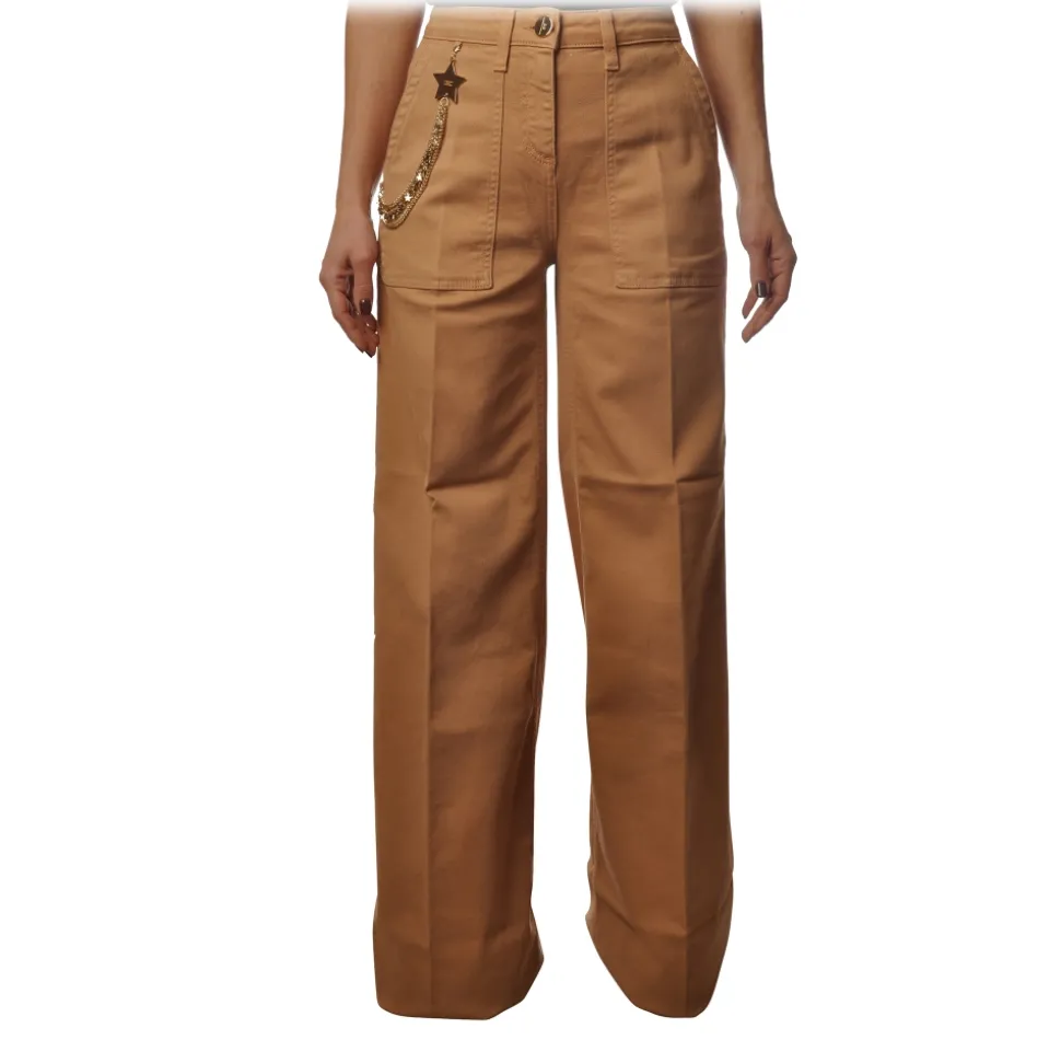 Elisabetta Franchi – Wide Leg Trousers with Chain – Camel – Trousers – Made in Italy – Luxury Exclusive Collection
