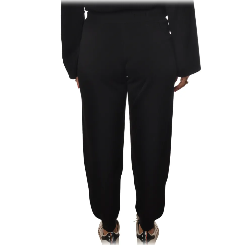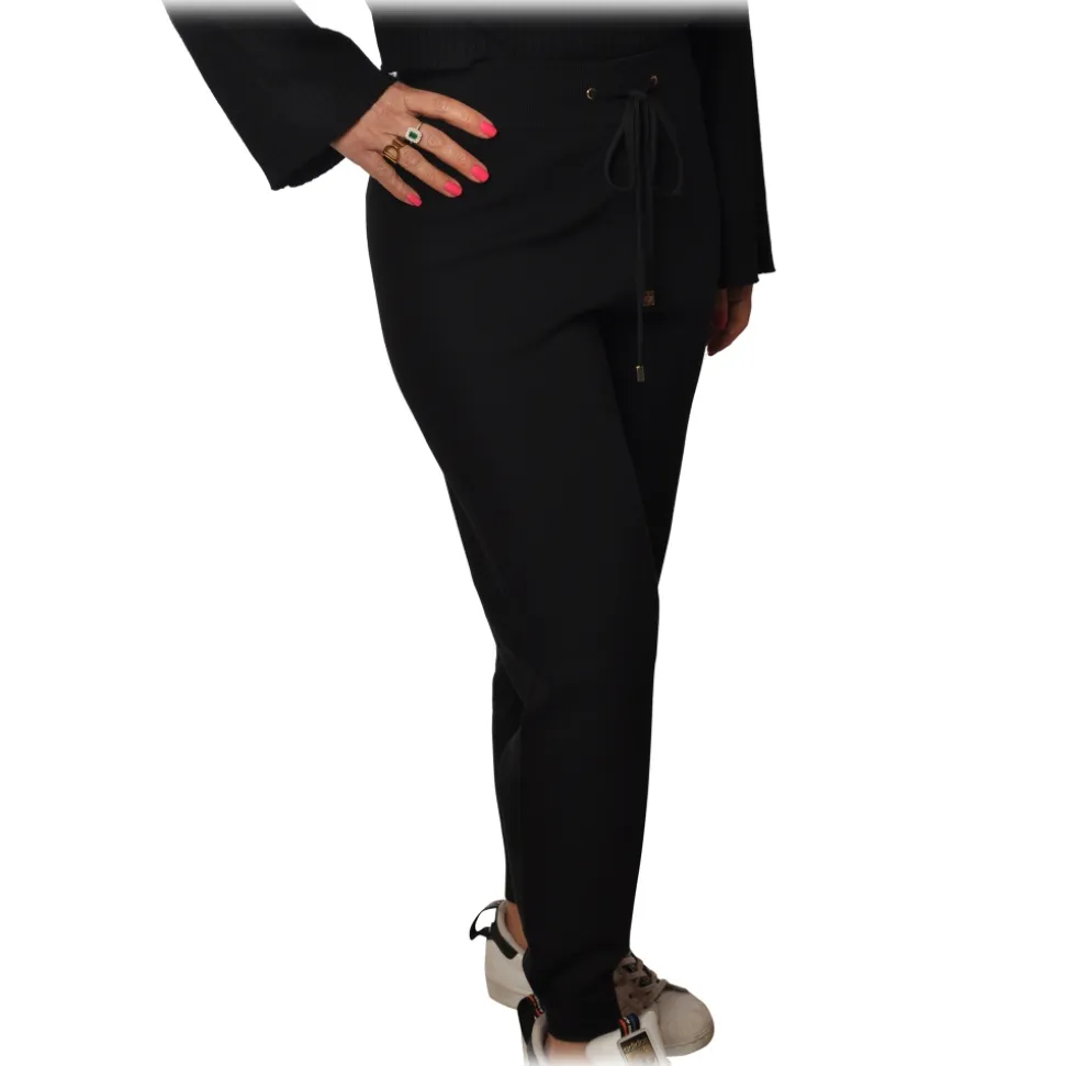 Elisabetta Franchi trousers, sporty model with wide leg, elastic hem at the bottom and waist, drawstring and embroidered logo.