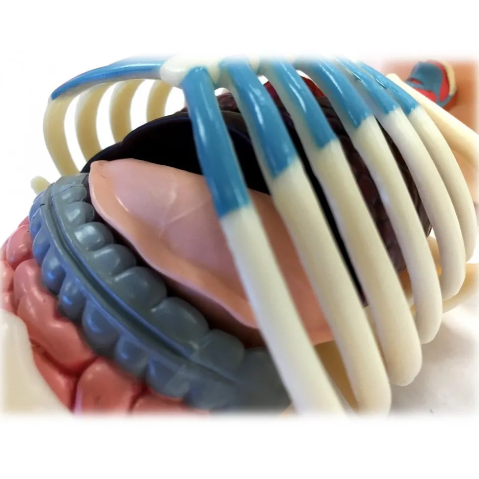 Clear skin showcases detailed skeleton and organs