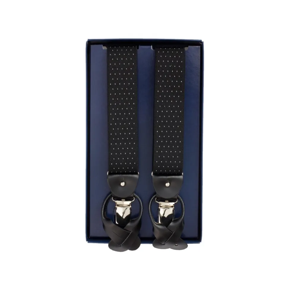 Fefè Napoli – Black Pois Gentleman Suspenders – Braces – Handmade in Italy – Luxury Exclusive Collection