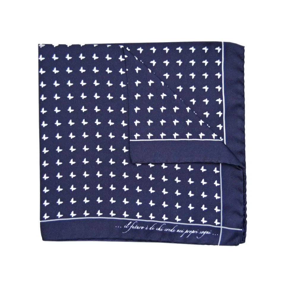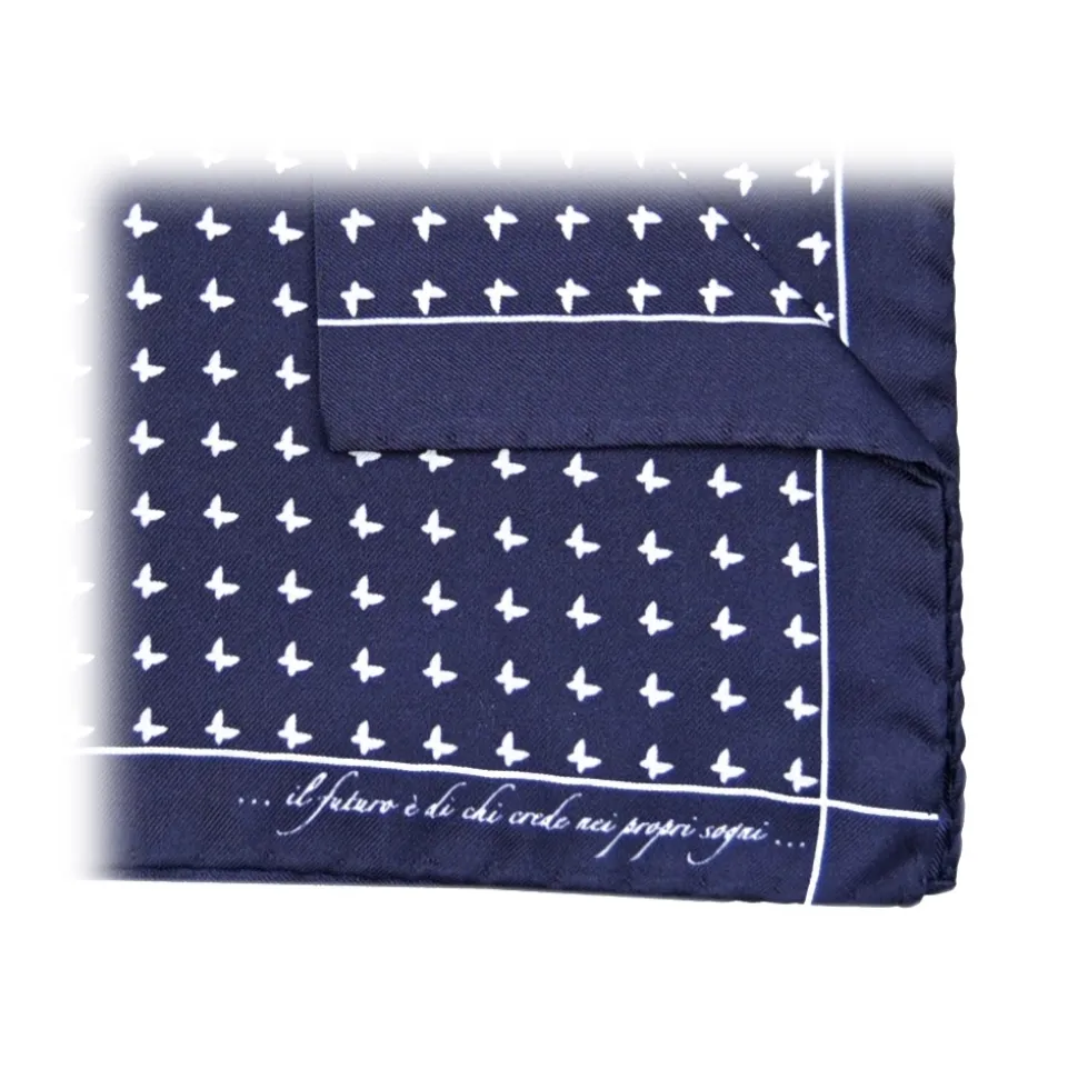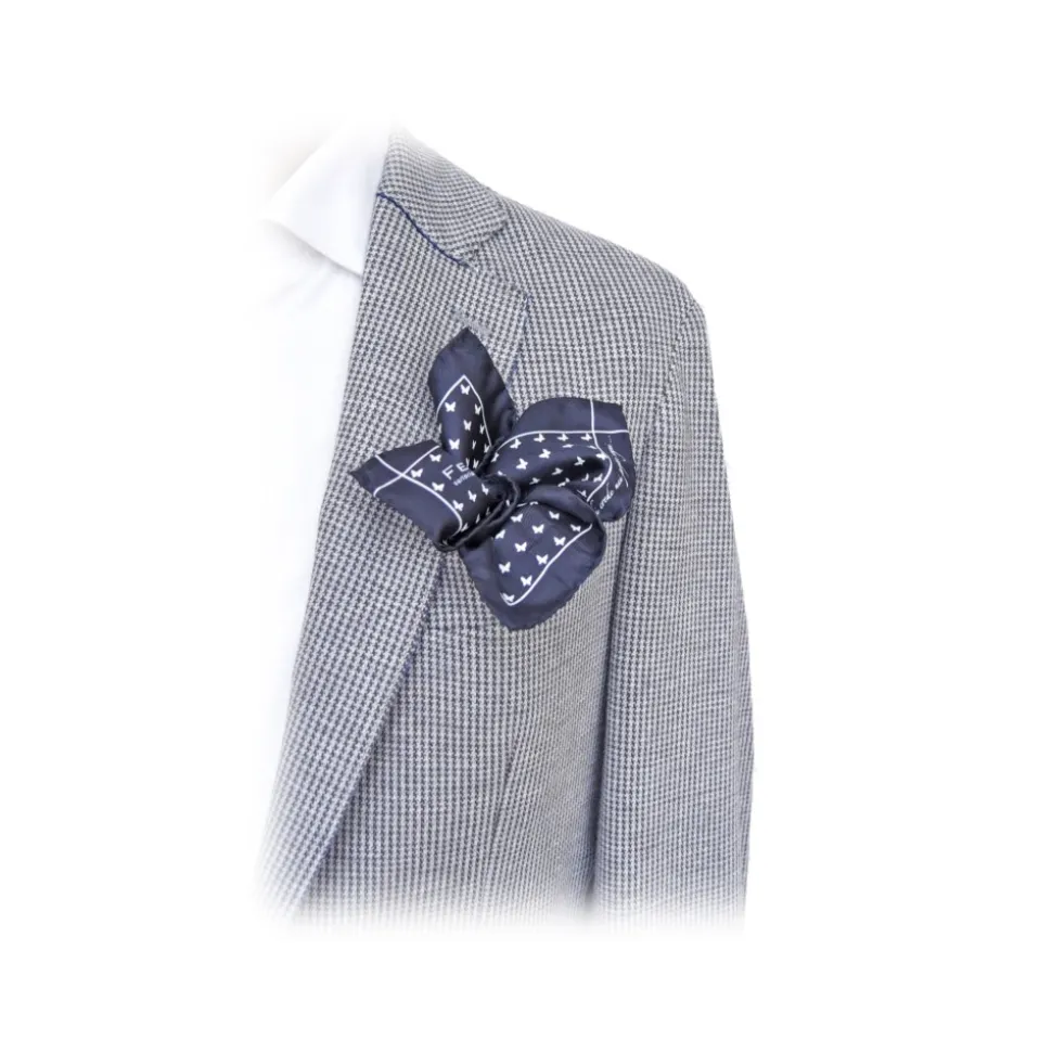 Fefè Napoli – Blue Butterfly Silk Dandy Pocket Square – Pocket-Square – Handmade in Italy – Luxury Exclusive Collection