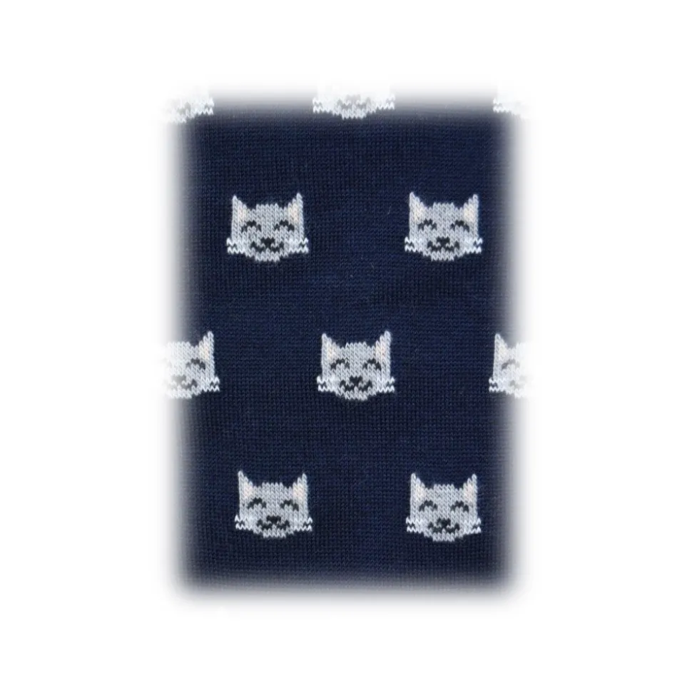 Fefè Napoli – Blue Cat Dandy Men’s Socks – Socks – Handmade in Italy – Luxury Exclusive Collection