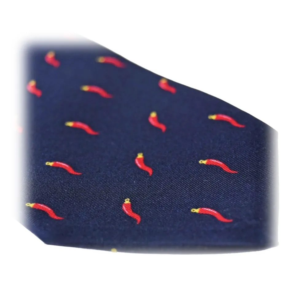 Fefè Napoli – Blue Lucky Horns Scaramantia Silk Tie – Ties – Handmade in Italy – Luxury Exclusive Collection