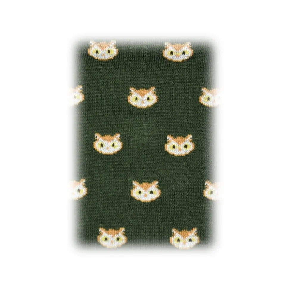 Fefè Napoli – Green Owls Scaramantia Men’s Socks – Socks – Handmade in Italy – Luxury Exclusive Collection