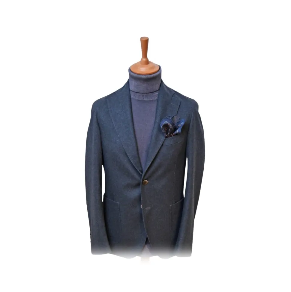 Slim fit Neapolitan tailored jacket. Typically winter in wool, it features a natural and enveloping shoulder, side vents, notched lapels, patch pockets and two-button closure in mother-of-pearl. Perfect with a turtleneck, shirt or t-shirt.